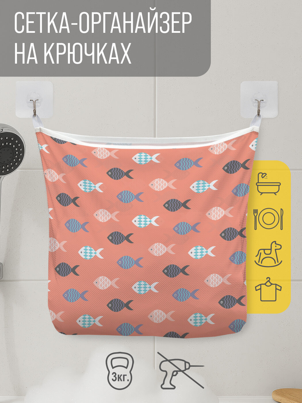 Купить Сетка для игрушек в ванную "Рыбий строй" органайзер для хранения, крючки, 33x39 см, JoyArty