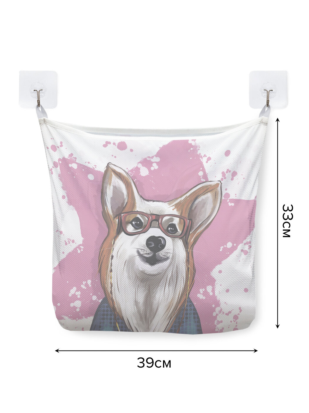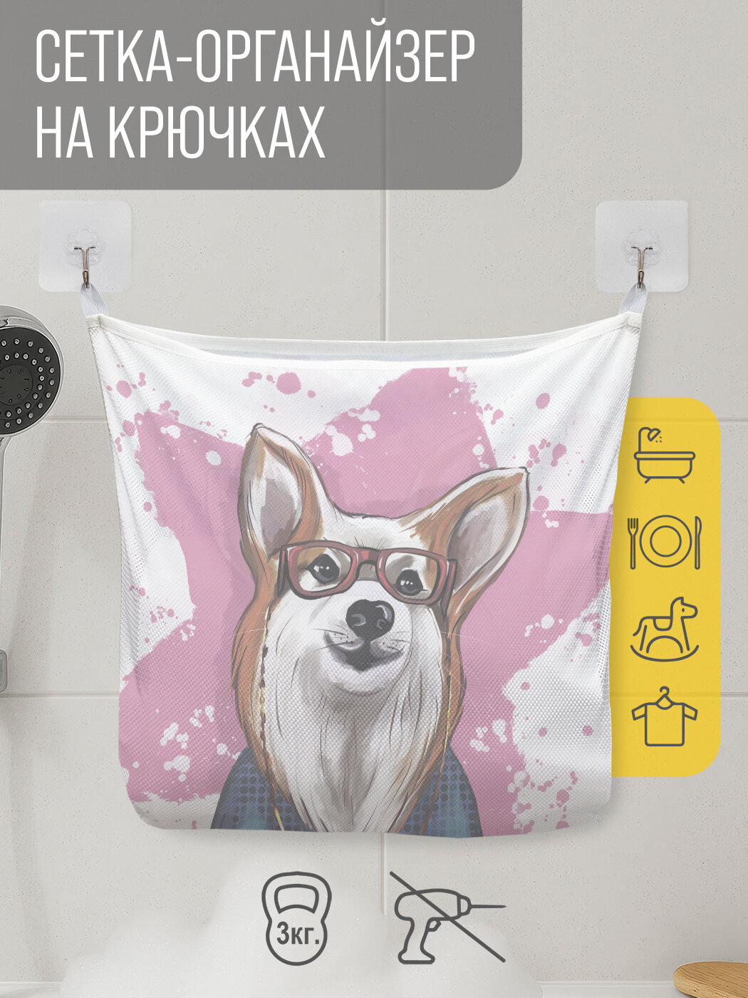 Купить Сетка для игрушек в ванную "Стильный корги" органайзер для хранения, крючки, 33x39 см, JoyArty