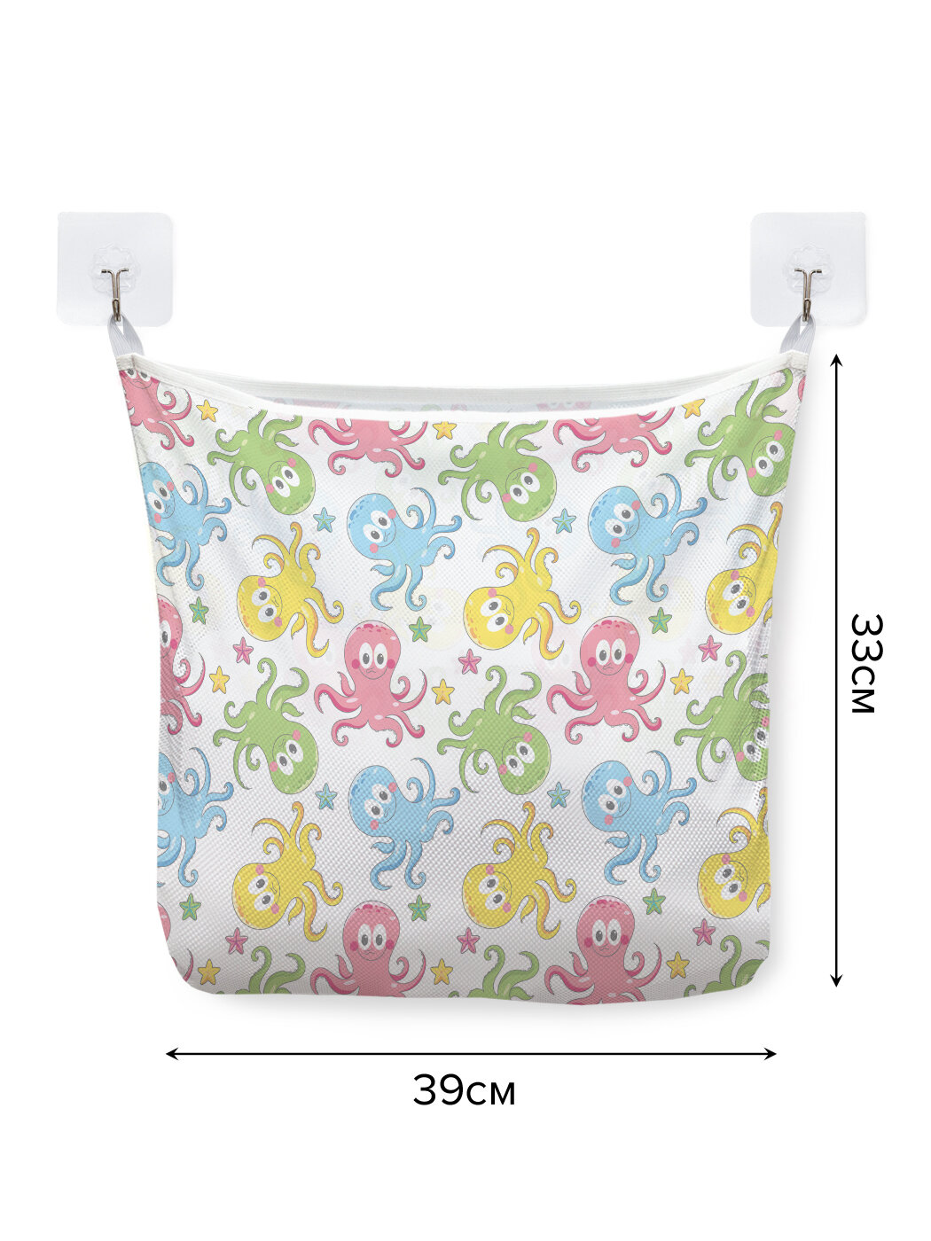 Сетка для игрушек в ванную "Цветные осьминожки" органайзер для хранения, крючки, 33x39 см, JoyArty интересное: