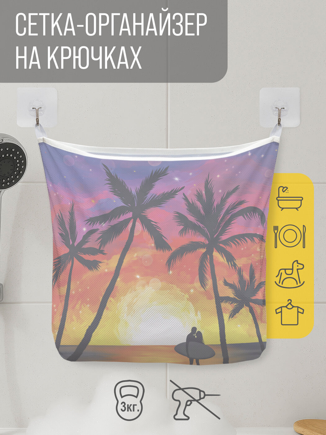 Сетка для игрушек в ванную "Любовь на берегу океана" органайзер для хранения, крючки, 33x39 см, JoyArty интересное: