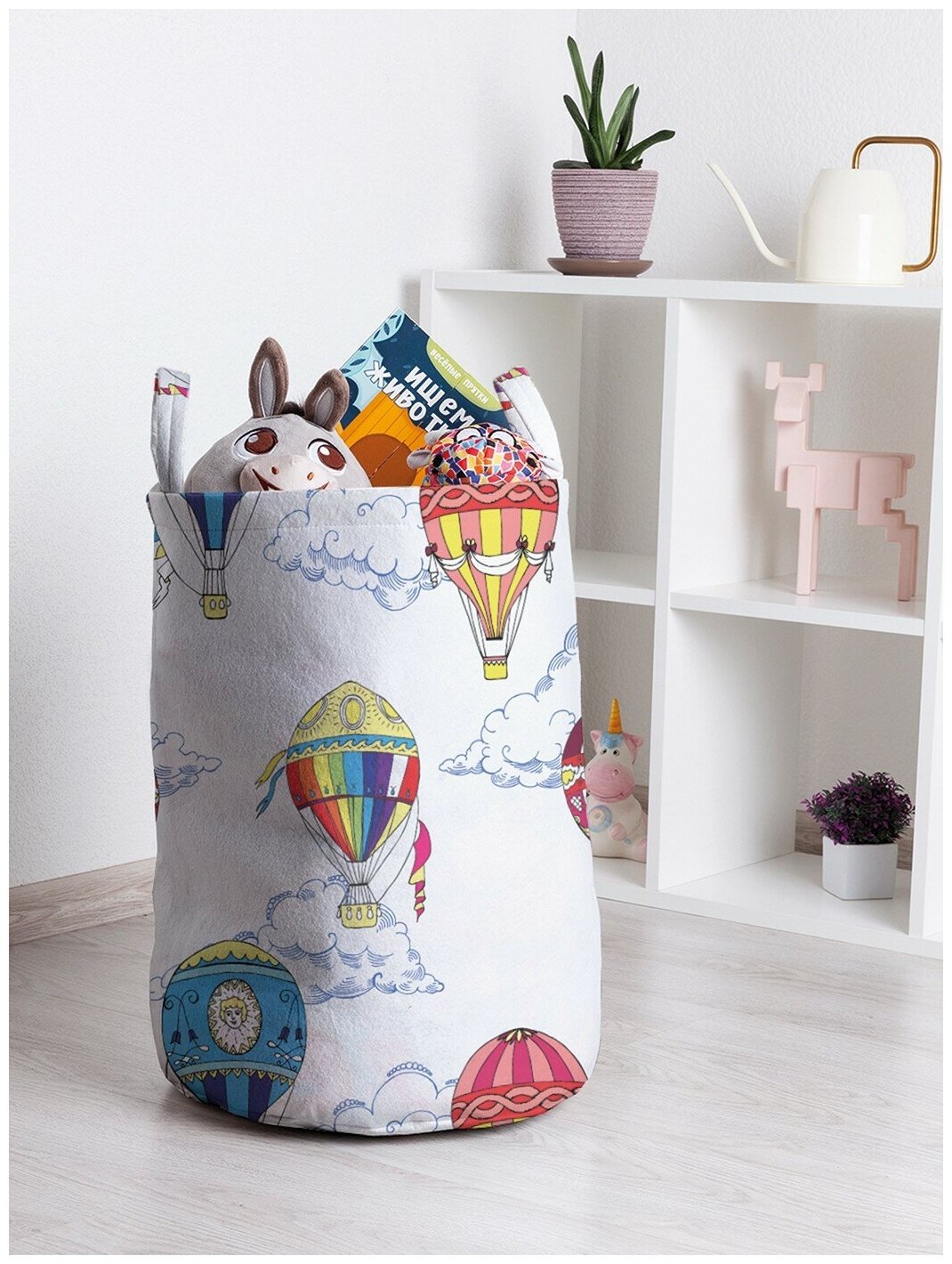 Корзина для хранения игрушек органайзер с ручками "Цветные воздушные шары" 45л, JoyArty интересное: