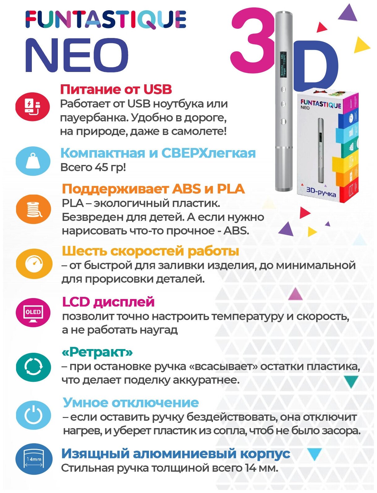 3D ручка Funtastique NEO (серебристый) 3д ручка , картриджи , стержни , триде , подарок для ребенка