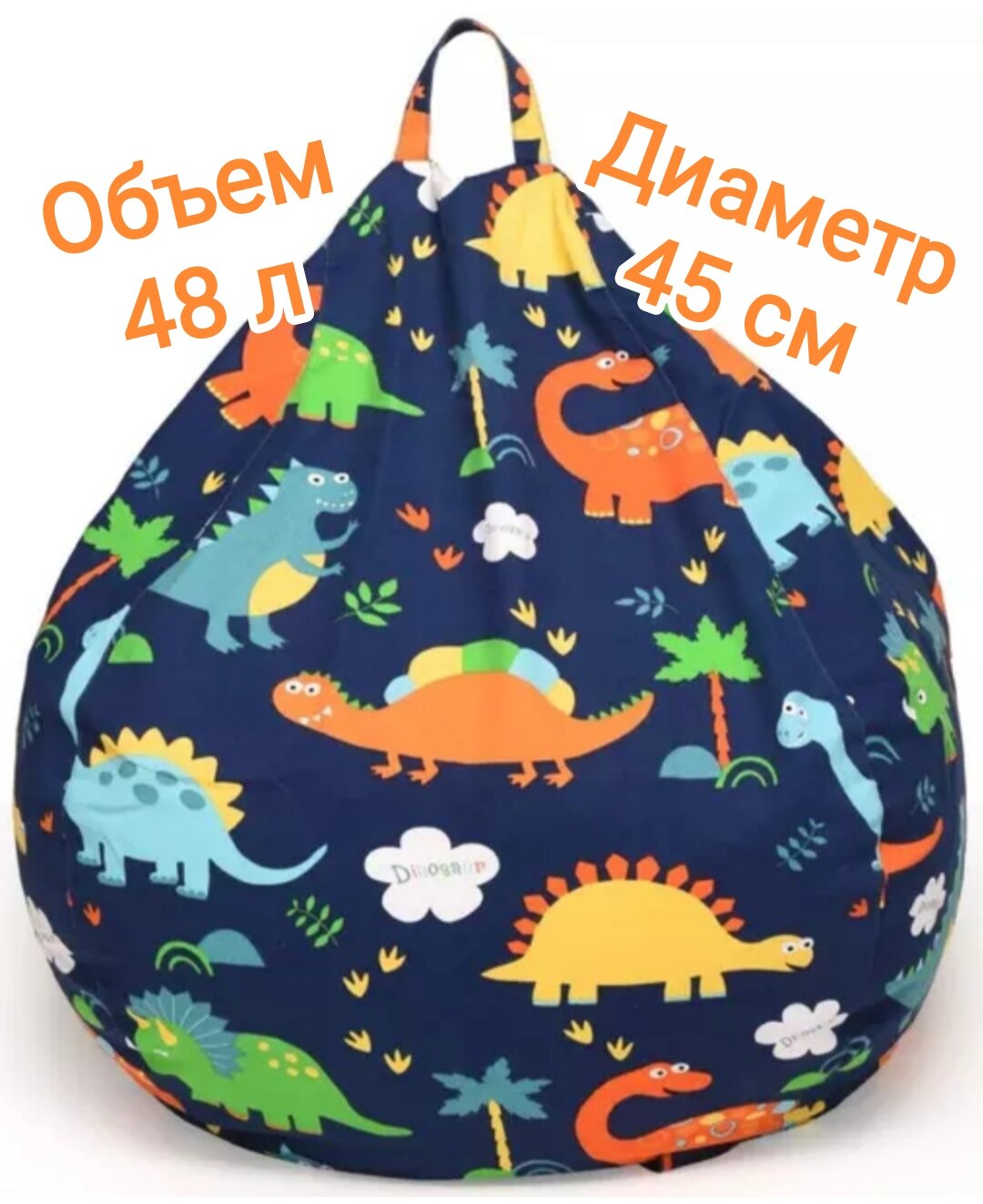 Сумка чехол пуфик для хранения мягких игрушек, диаметр 45 см. Дино интересное: