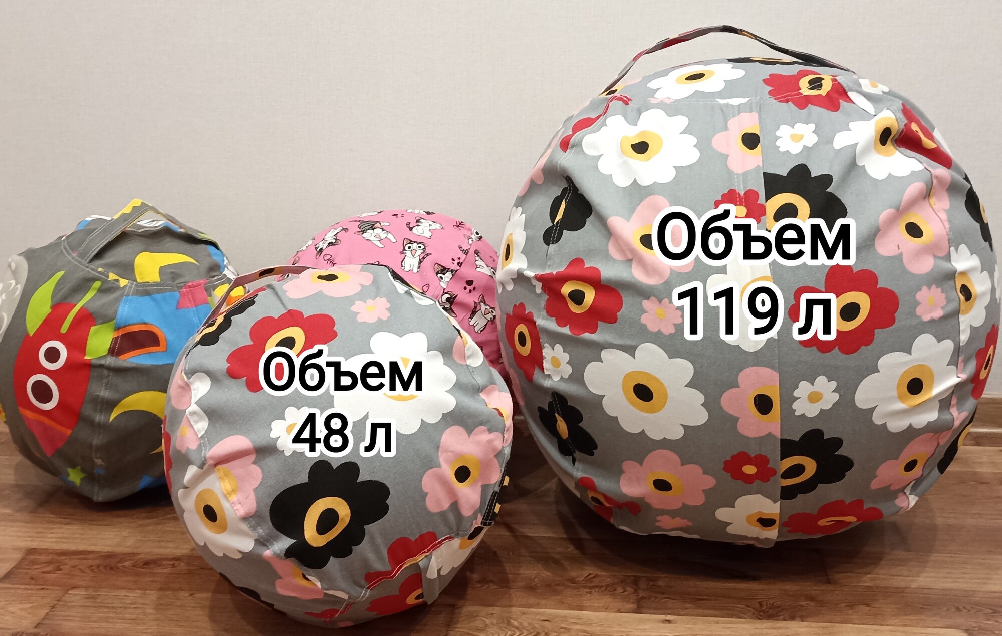 Сумка чехол пуфик для хранения мягких игрушек, диаметр 45 см. Цветы