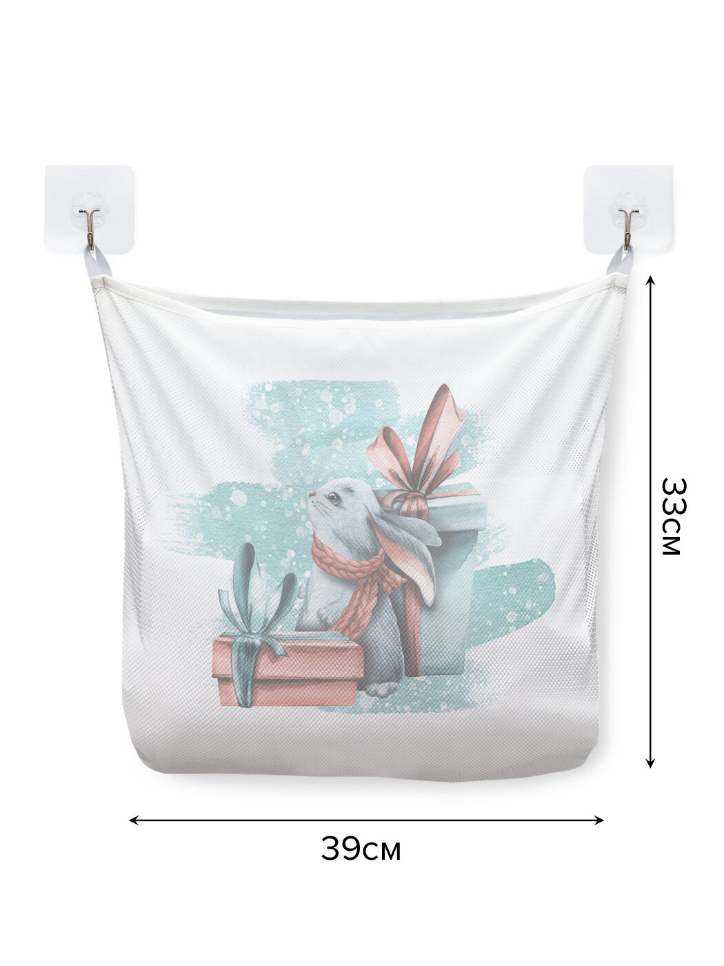 Сетка для игрушек в ванную "Зайчик в зимней сказке" органайзер для хранения, крючки, 33x39 см, JoyArty, серия Новый год