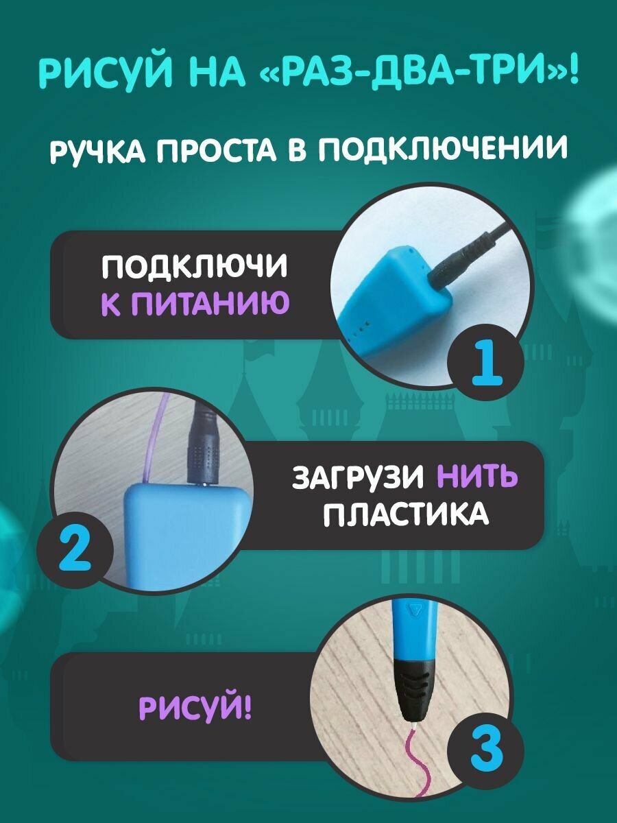 3D ручка для творчества Funtasy PICCOLO с набором пластика, 3д ручка для мальчиков и девочек (голубая) , стержни , триде , картриджи , подарок для ребенка