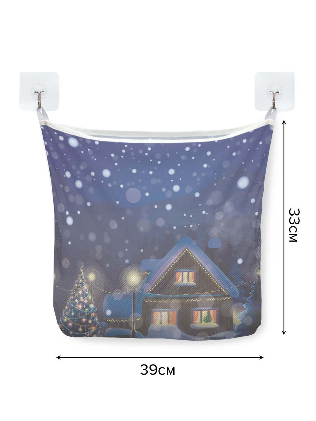 Сетка для игрушек в ванную "Зимняя сказка" органайзер для хранения, крючки, 33x39 см, JoyArty, серия Новый год