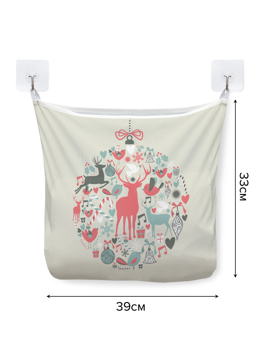 Купить Сетка для игрушек в ванную "Новогодняя игрушка" органайзер для хранения, крючки, 33x39 см, JoyArty, серия Новый год
