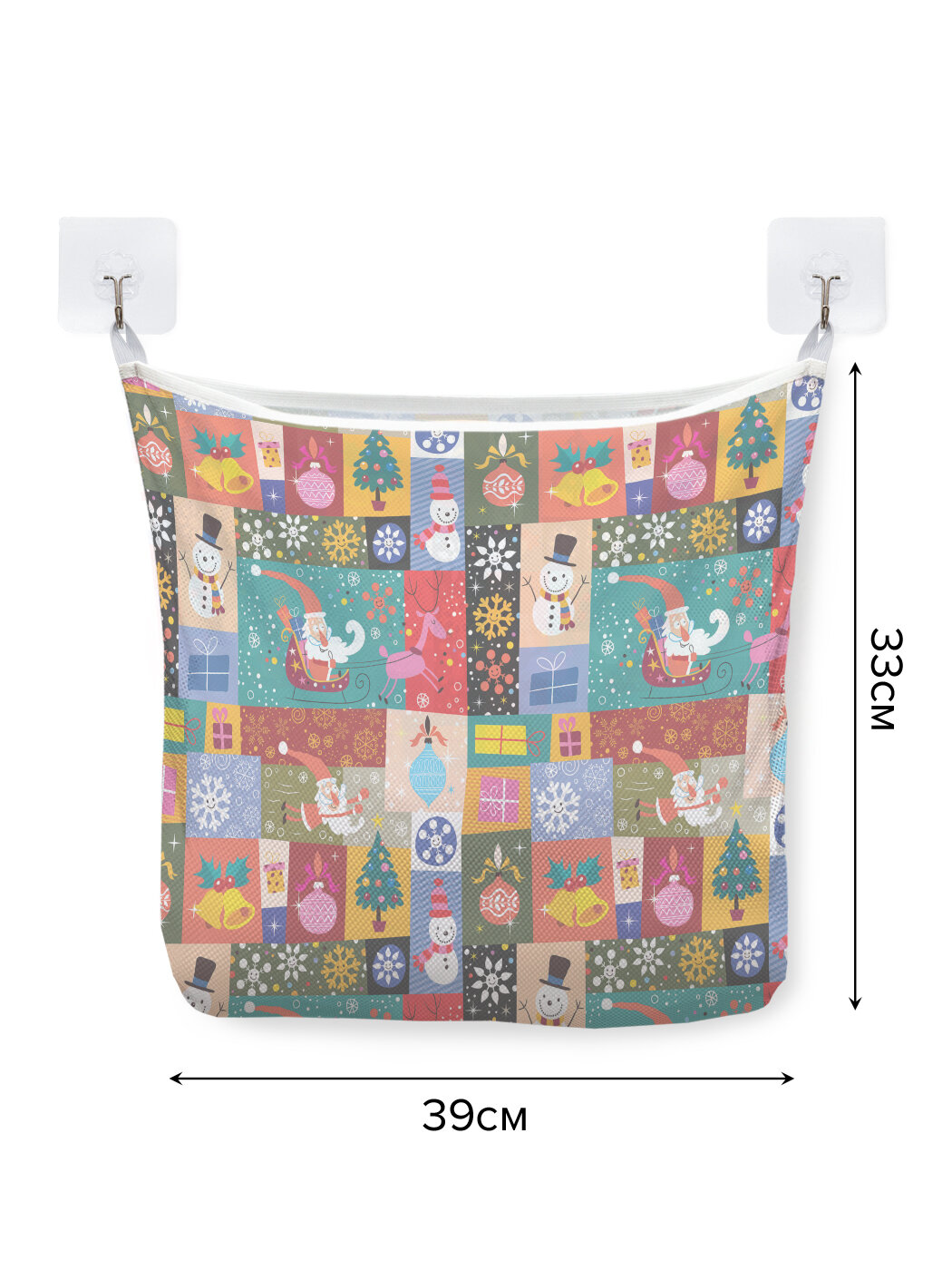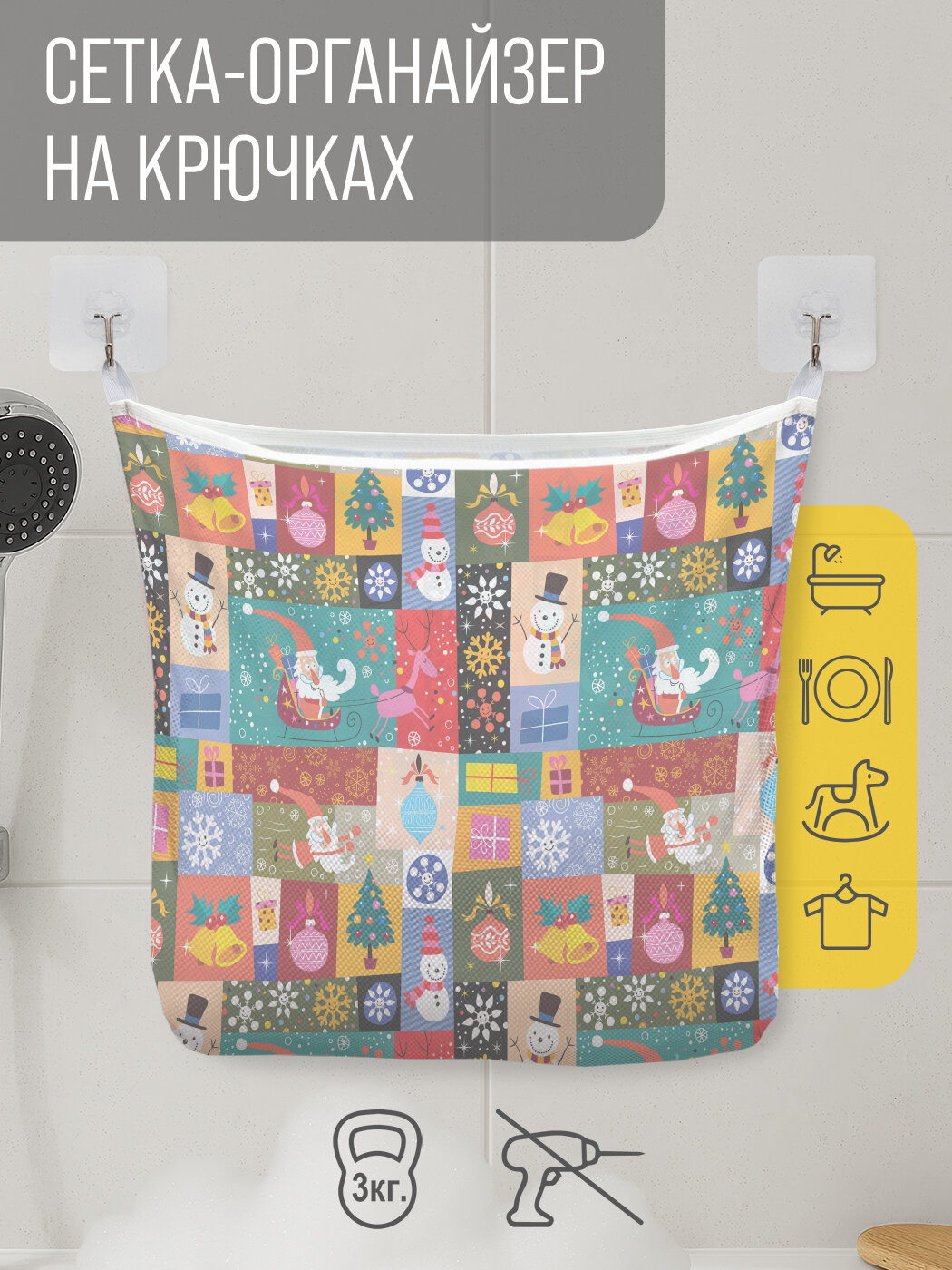СохранитьСетка для игрушек в ванную "Праздник в красках" органайзер для хранения, крючки, 33x39 см, JoyArty, серия Новый год интересное: