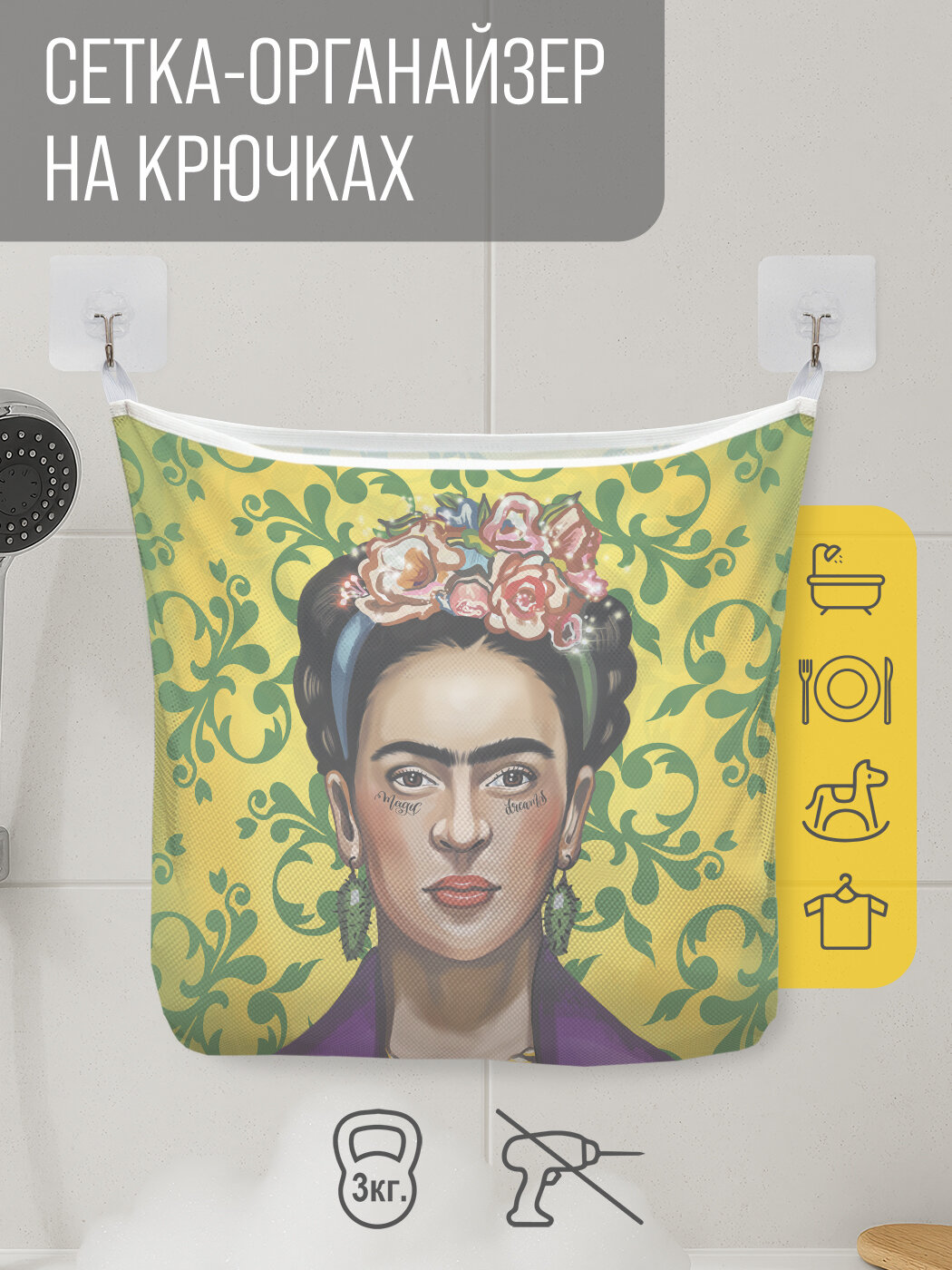 СохранитьСетка для игрушек в ванную "Загадочная Фрида" органайзер для хранения, крючки, 33x39 см, JoyArty интересное: