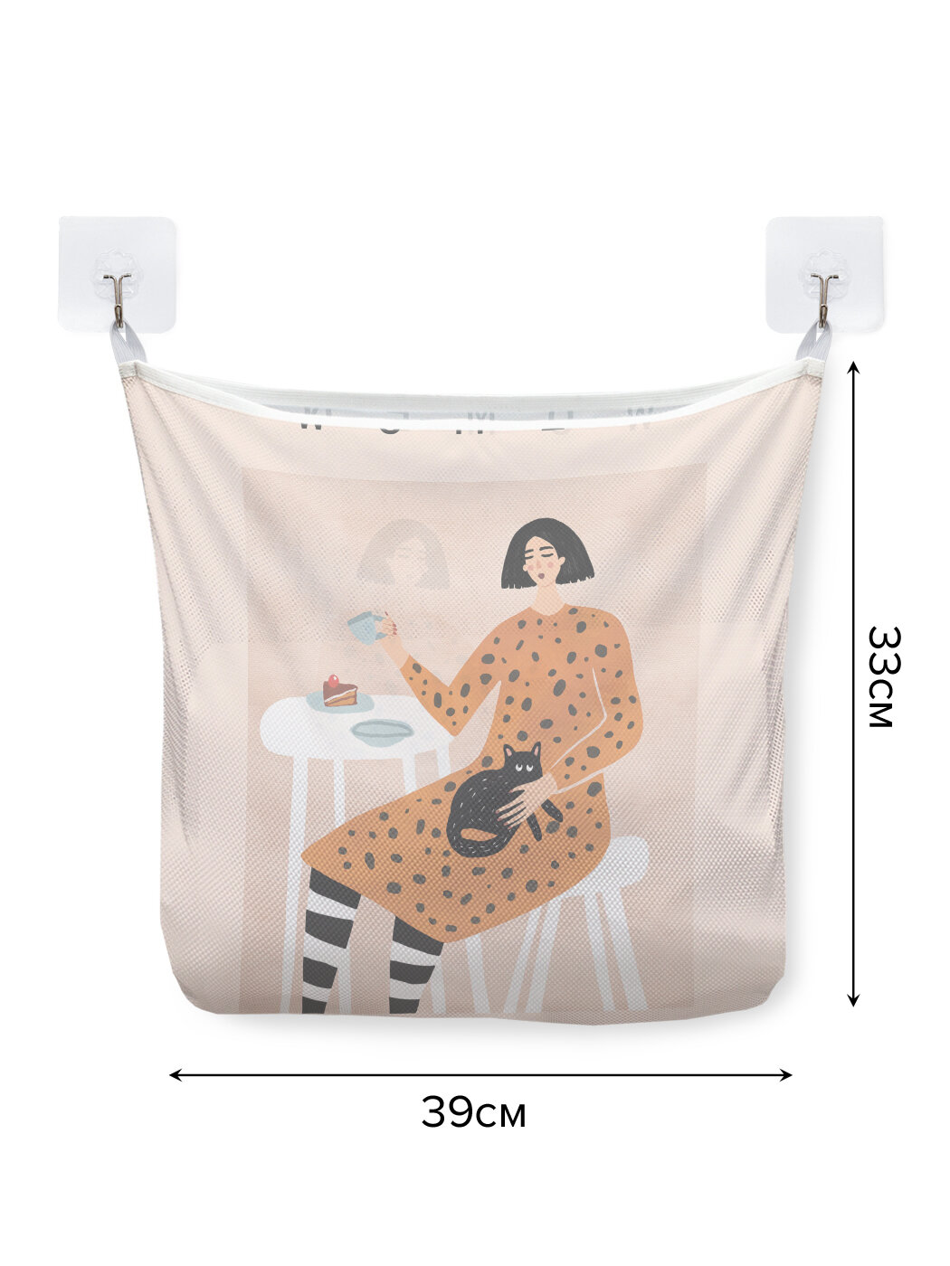 Купить Сетка для игрушек в ванную "Чаепитие с котом" органайзер для хранения, крючки, 33x39 см, JoyArty