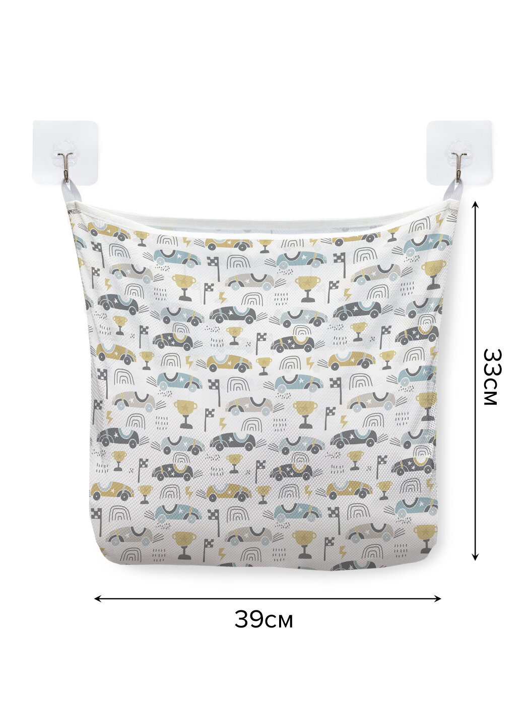 Сетка для игрушек в ванную "Автогонки" органайзер для хранения, крючки, 33x39 см, JoyArty, серия 23 февраля интересное: