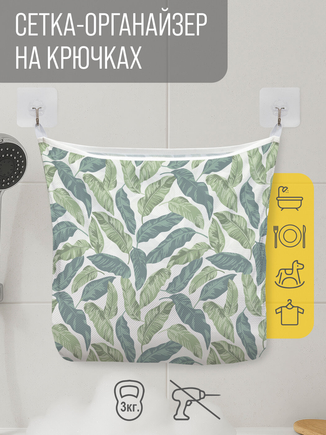 СохранитьСетка для игрушек в ванную "Лиственная завеса" органайзер для хранения, крючки, 33x39 см, JoyArty интересное: