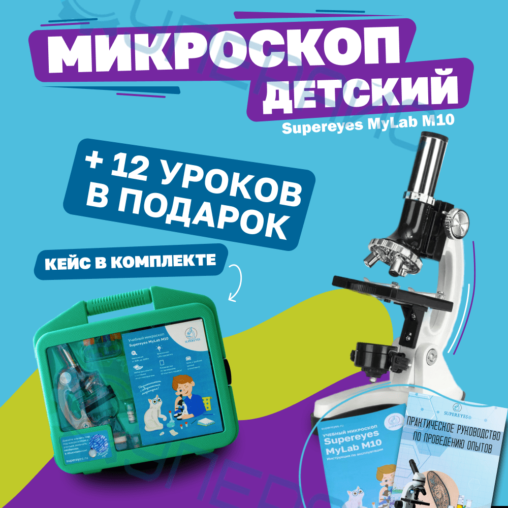 Микроскоп детский в кейсе Supereyes MyLab M10, 300x-1200x (с опытами и 5 микропрепаратами) интересное:
