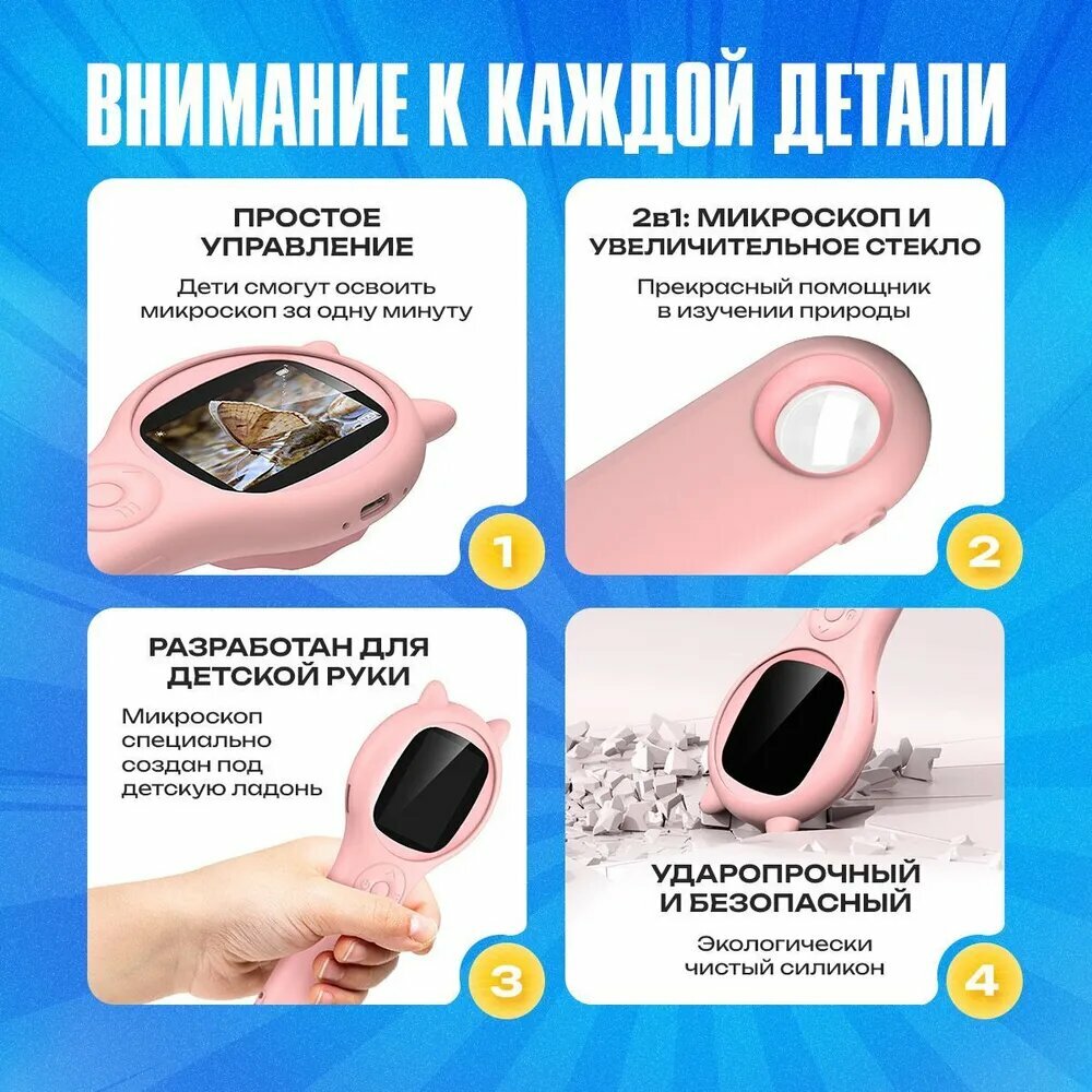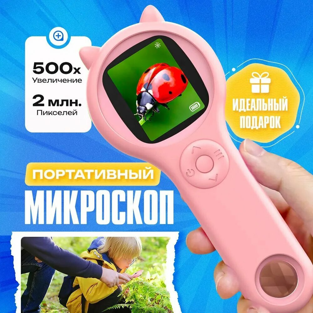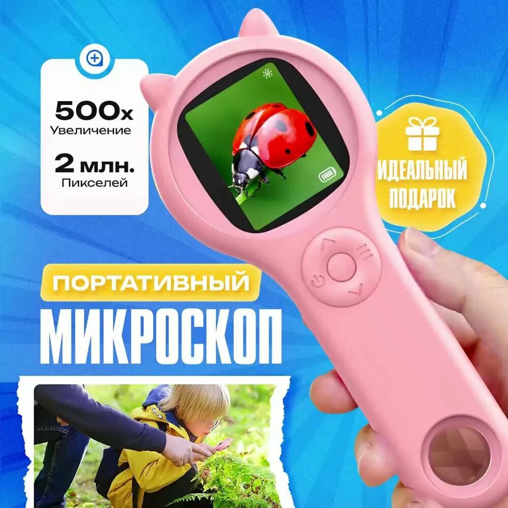Купить Портативный детский микроскоп, цифровой, карманная лупа с увеличением, с подсветкой, для школьных опытов, подарок