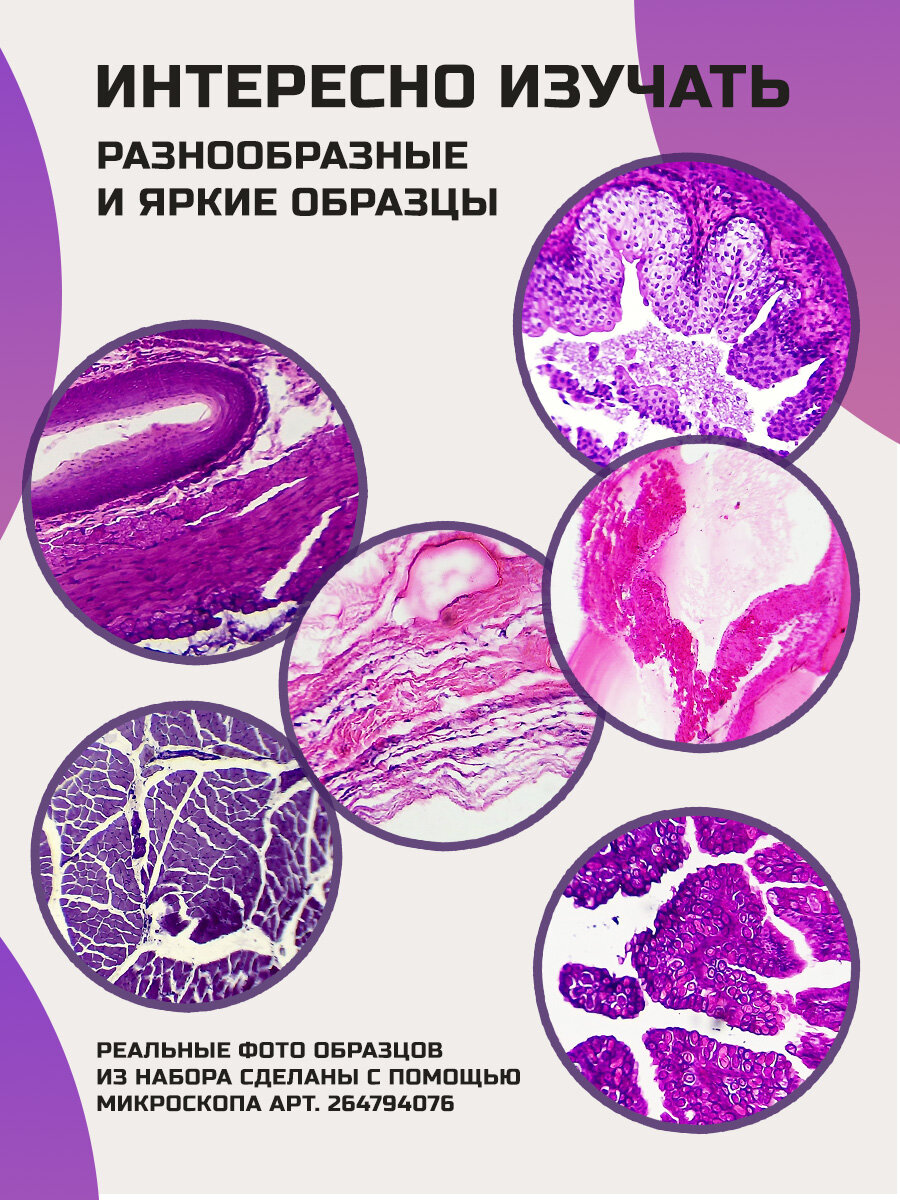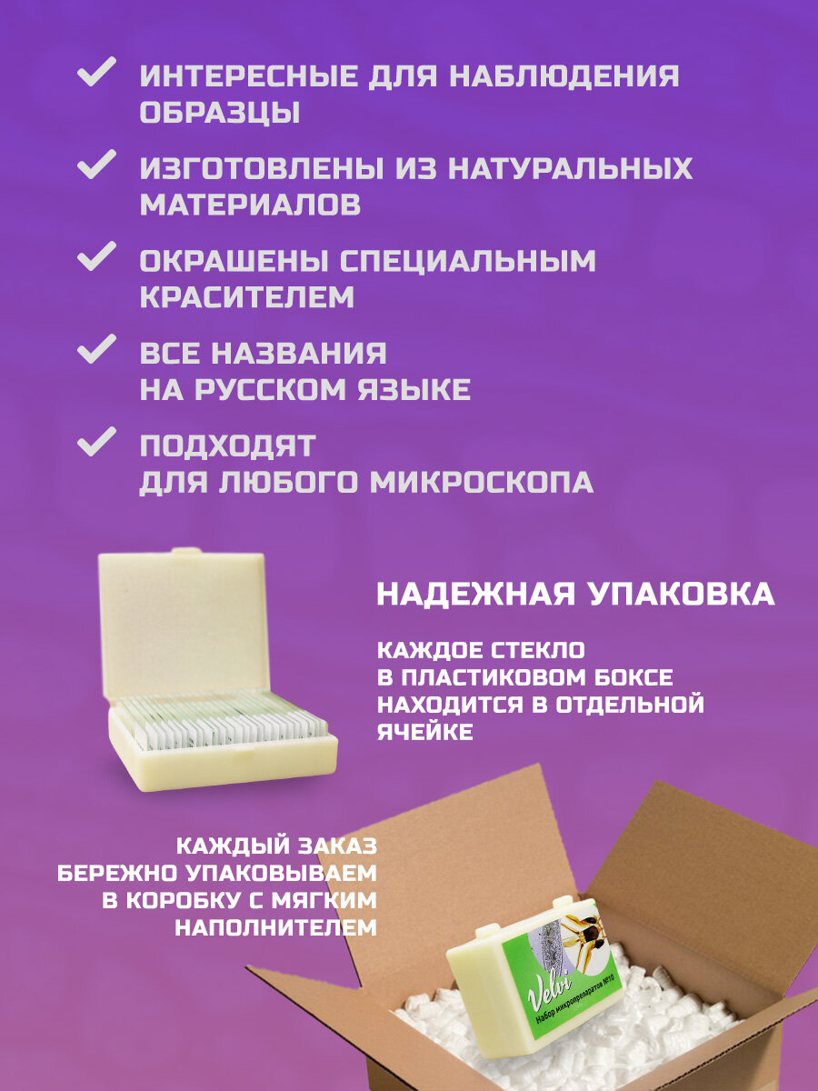 Микропрепараты Velvi "Mix №10", набор из 10 готовых образцов на стекле для изучения под микроскопом