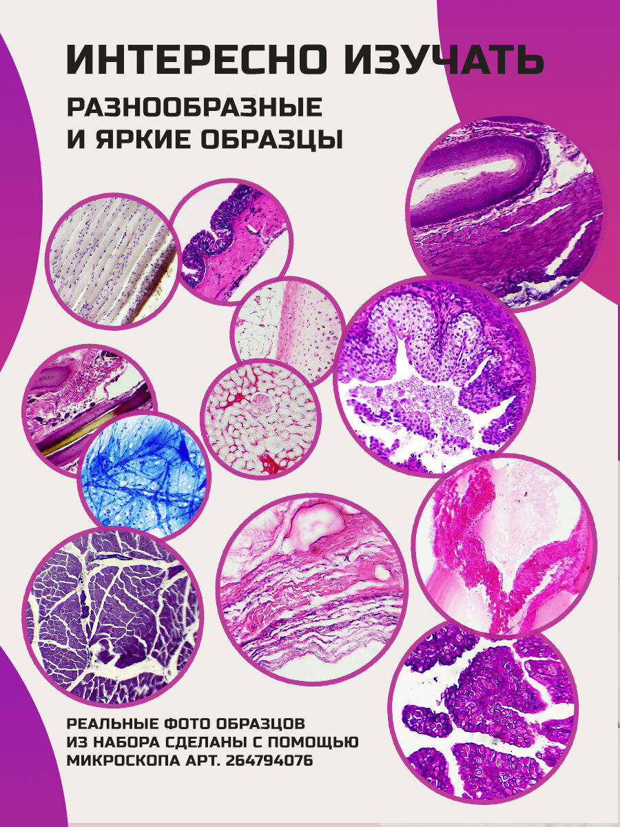 СохранитьМикропрепараты Velvi "Mix №100", большой набор готовых образцов, 100 слайдов для изучения под микроскопом интересное: