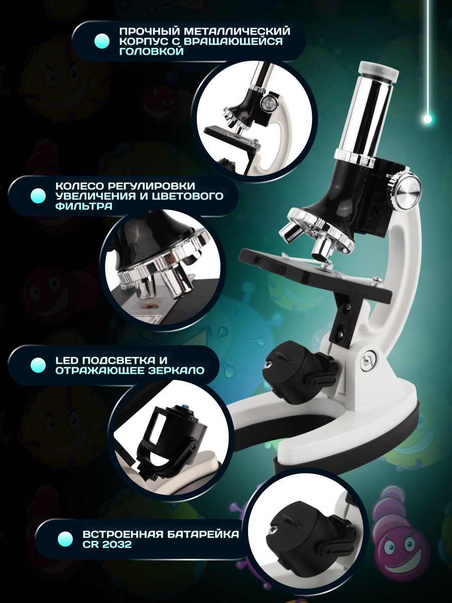 Купить Микроскоп для детей, набор для опытов с подставкой, 3 режима