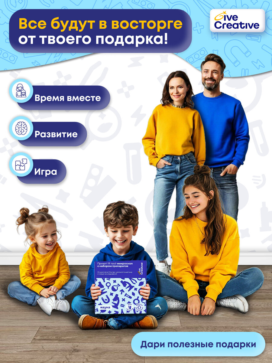 Микроскоп детский школьный Give Creative с набором для исследования и опытов, 6 режимов увеличения