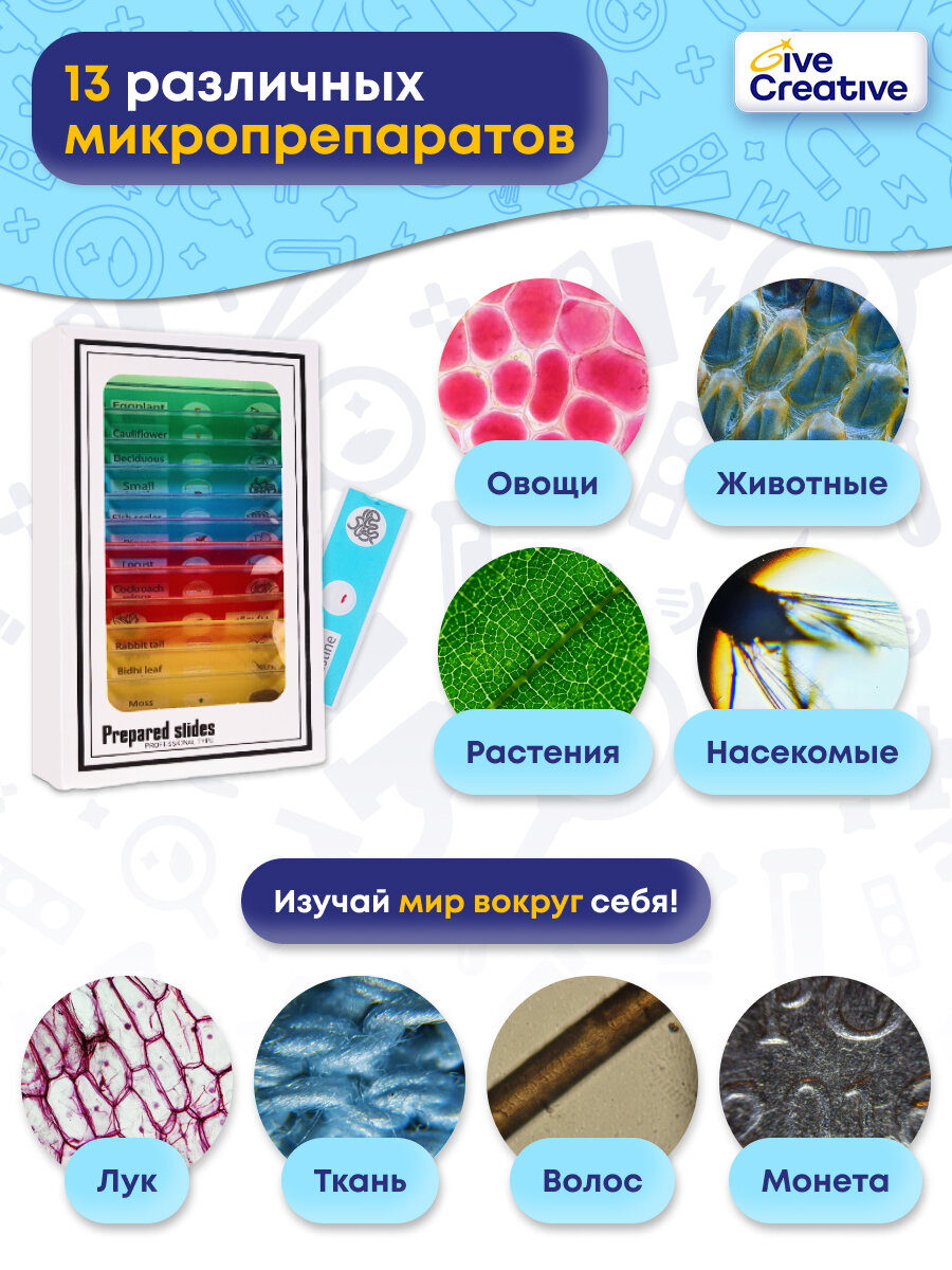 Купить Микроскоп детский школьный Give Creative с набором для исследования и опытов, 3 режима увеличения