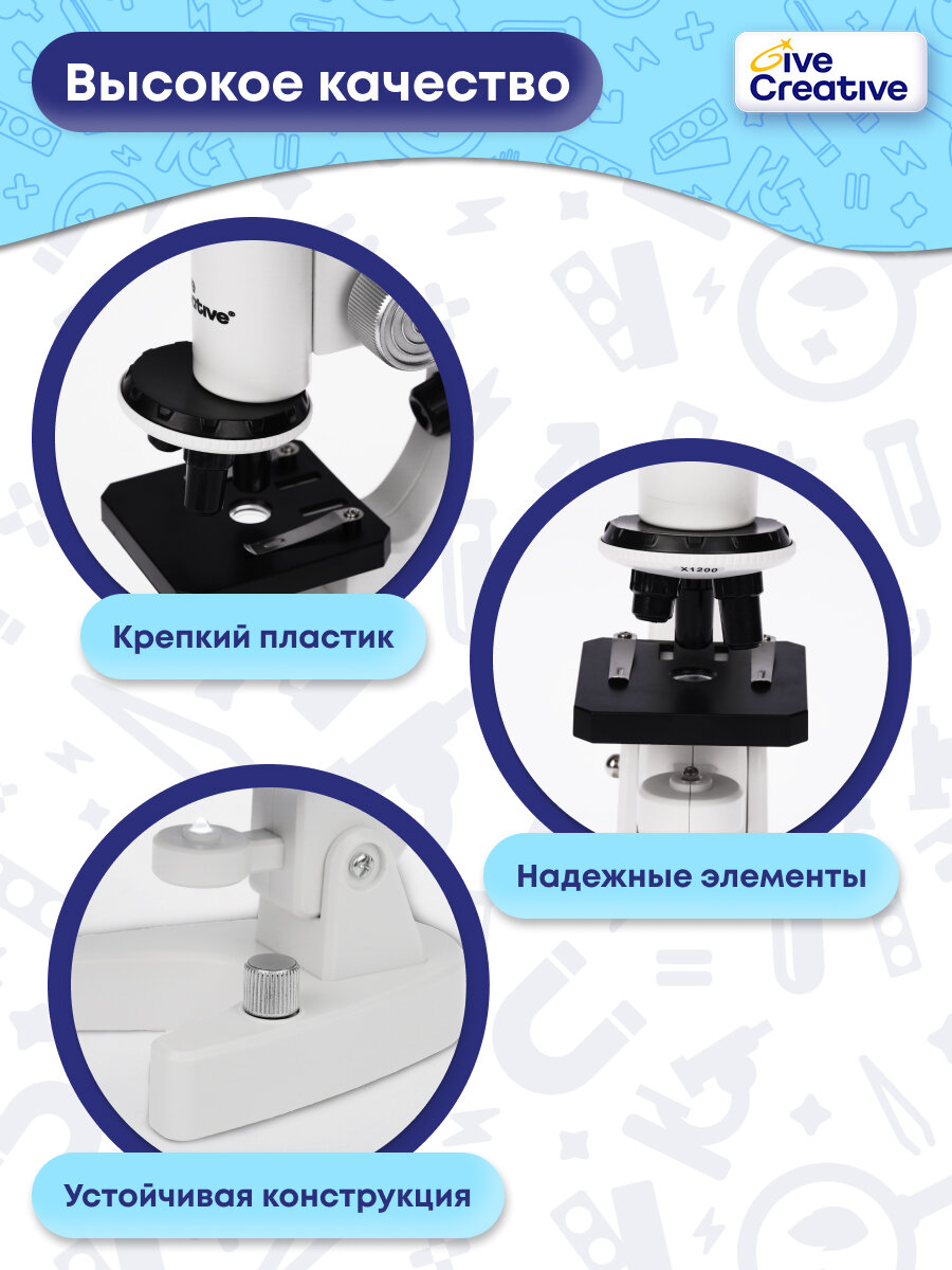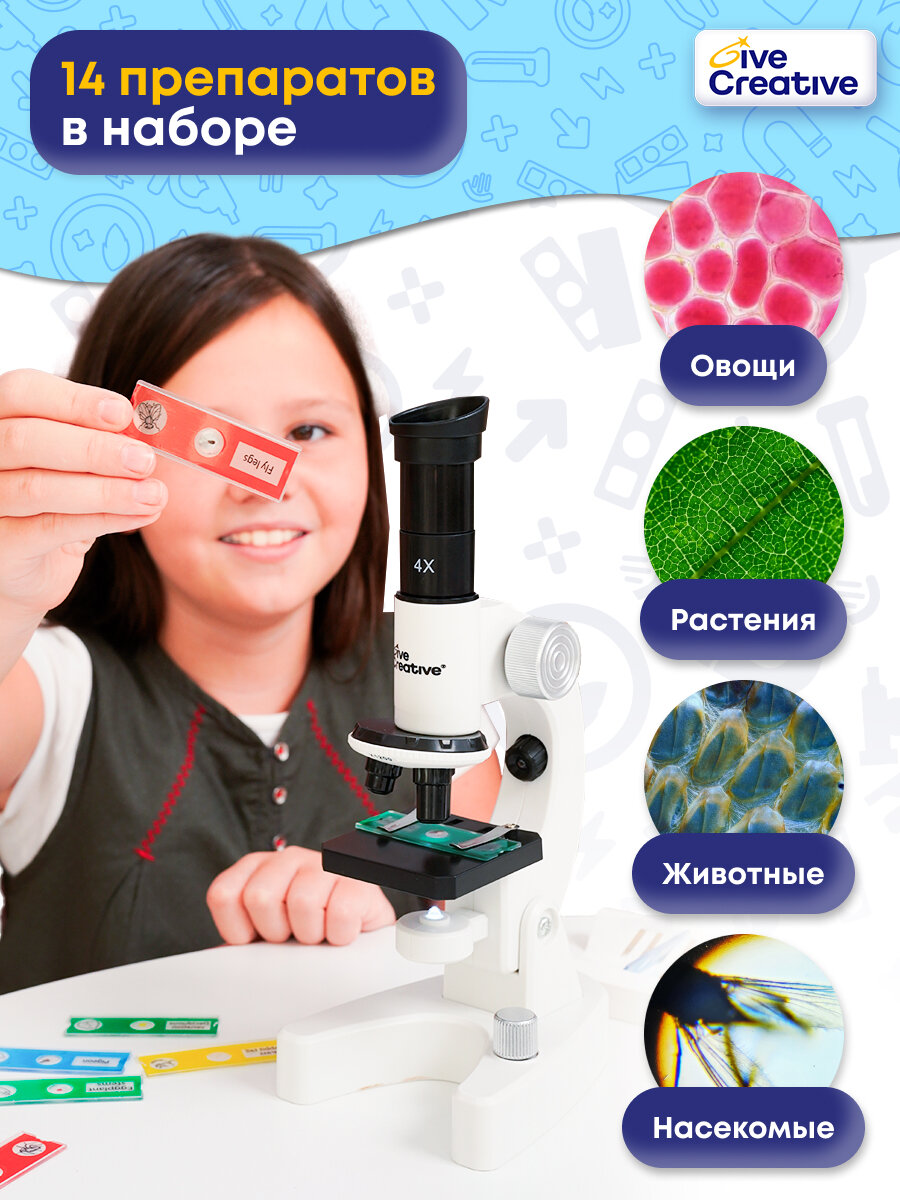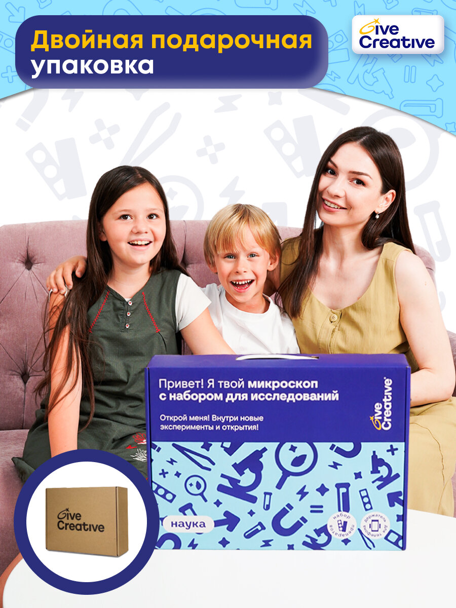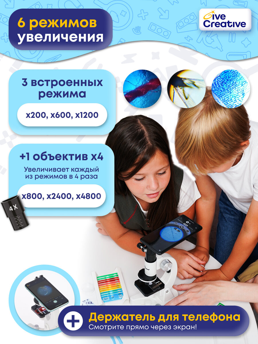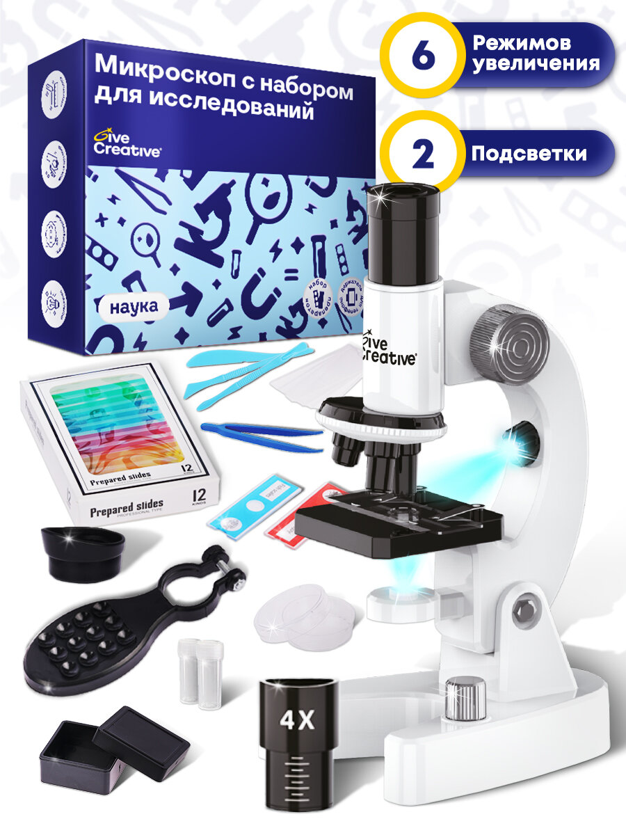 Купить Микроскоп детский школьный Give Creative с набором для исследования и опытов, 6 режимов увеличения