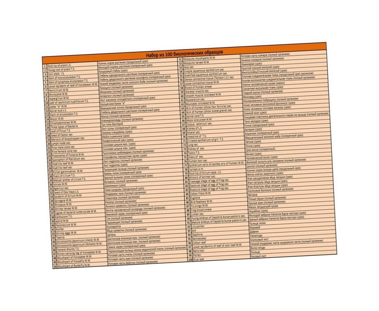 Купить Наборы микропрепаратов (100 шт) к микроскопам (человек, зоология, растения, животные и т. д.). Русский язык. Стекло.