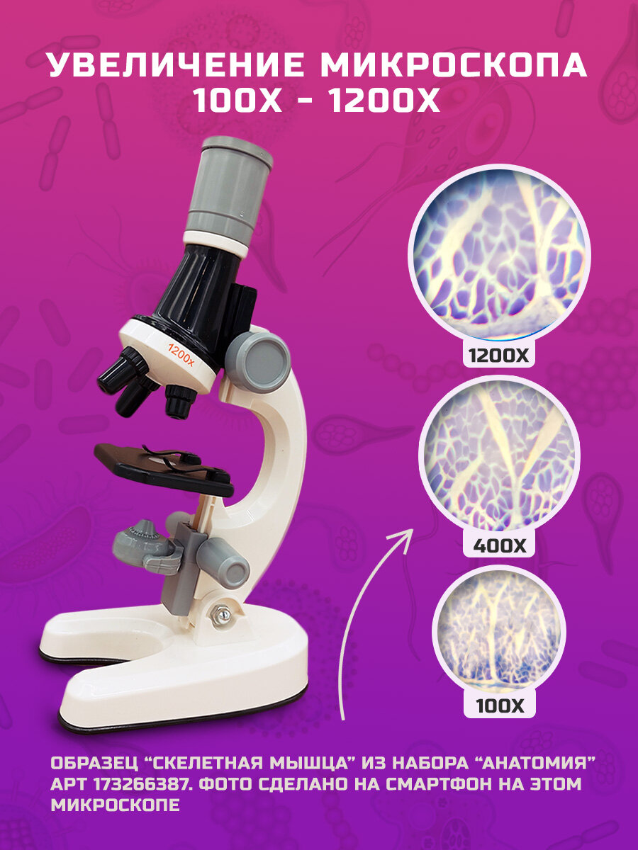 Купить Микроскоп школьный детский Velvi 1200х, в комплекте с 4D книгой и препаратами Velvi "Mix №12"
