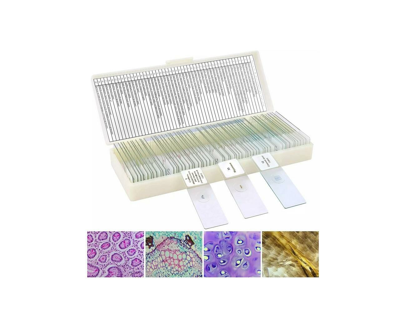 Купить Наборы микропрепаратов к микроскопам 50 штук на русском языке (человек, растения, животные, зоология и т. д.). Стекло.
