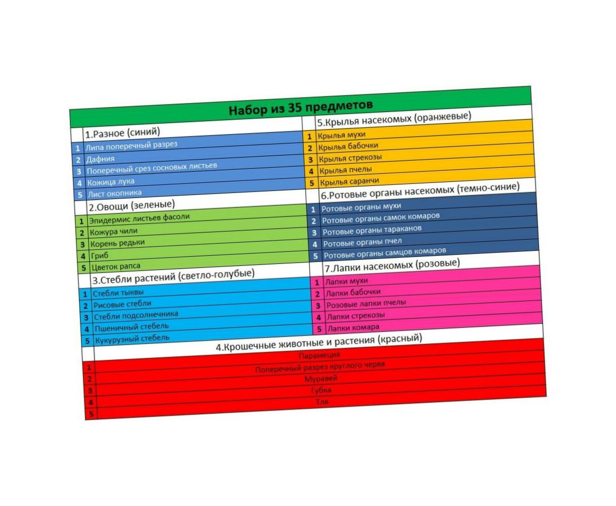 Набор микропрепаратов на русском языке 35 шт. биология, анатомия и ботаника для микроскопа. Стекло. интересное:
