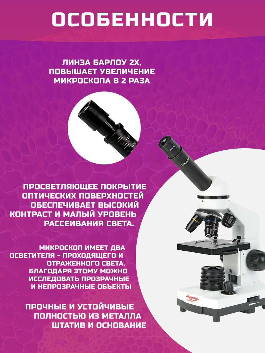 Микроскоп Микромед "Атом" 40х-800х, в кейсе с 4D книгой и набором препаратов Ботаника, Анатомия интересное: