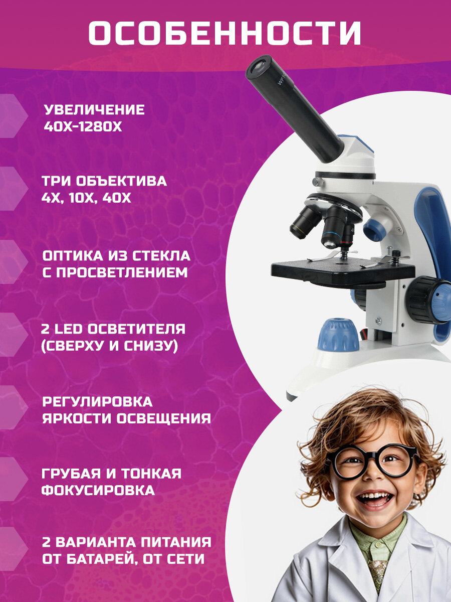 Микроскоп Микромед "Эврика SMART " 40x-1280x, в кейсе, 4D книгой и препаратами Ботаника и Анатомия интересное: