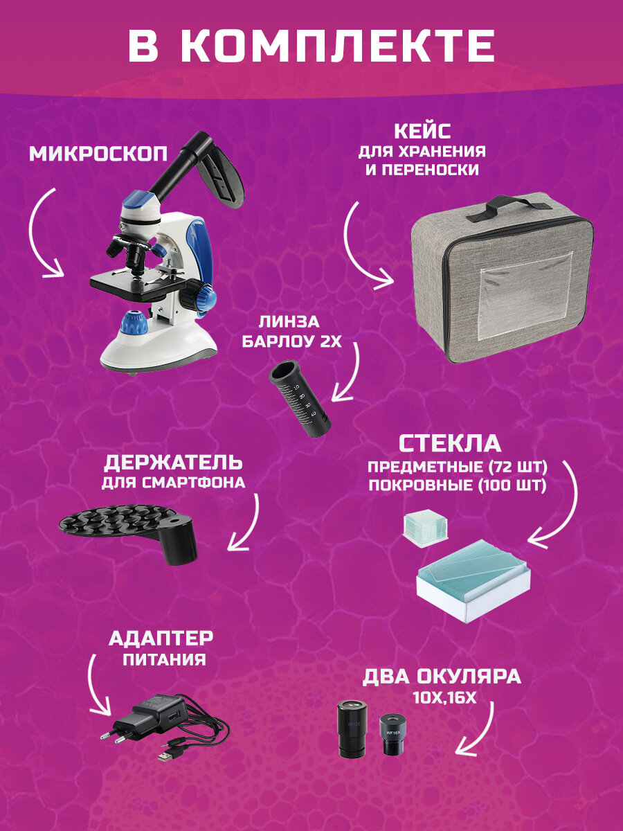 Микроскоп Микромед "Эврика SMART " 40x-1280x, в кейсе с набором предметных и покровных стекл интересное: