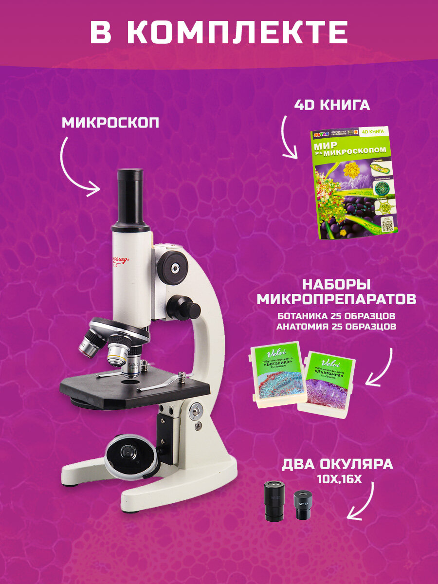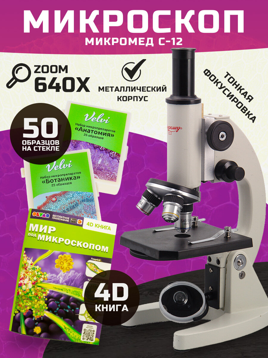 Микроскоп Микромед "C-12" 40x-640x, в комплекте c 4D книгой и препаратами Velvi №10