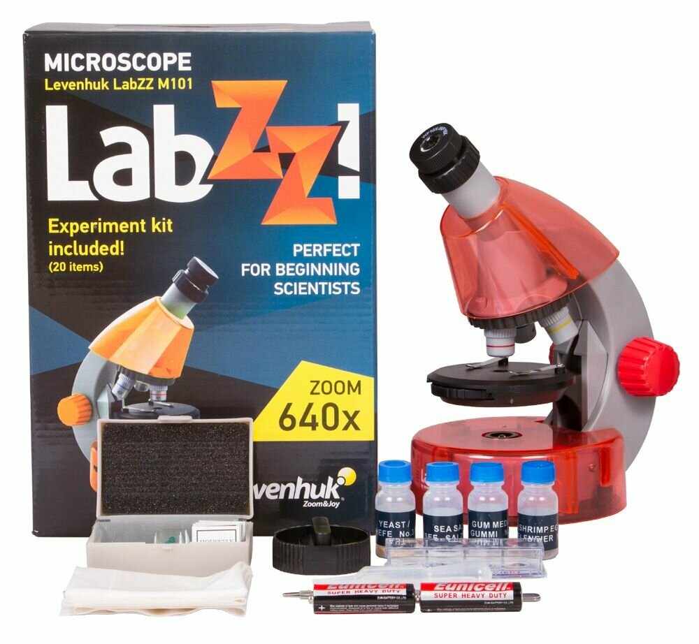Купить Levenhuk LabZZ M101, Микроскоп детский монокулярный с набором для опытов Levenhuk K50, Апельсин
