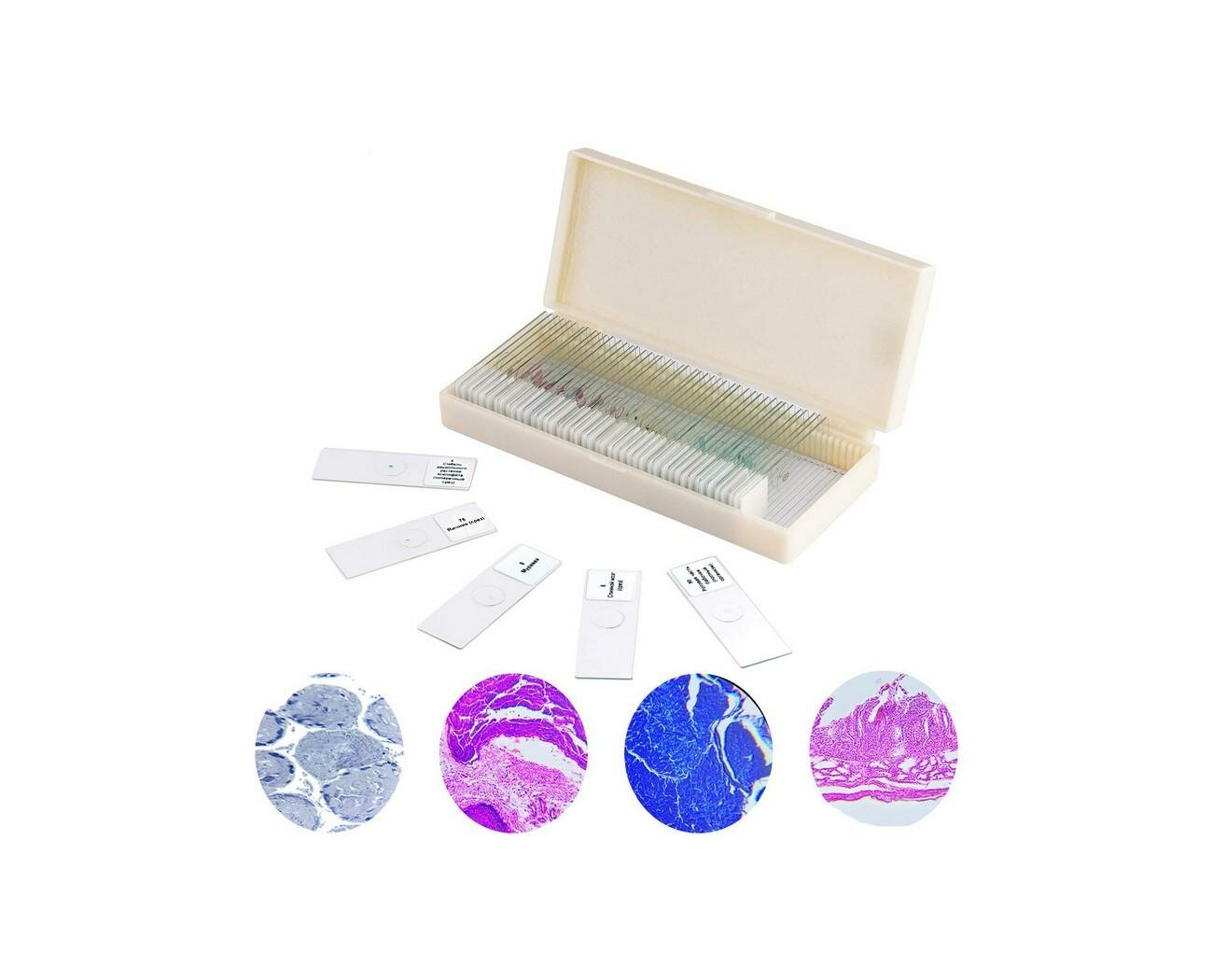 Купить Набор микропрепаратов 50 штук на русском языке биология, растения, анатомия и ботаника для микроскопа. Стекло.