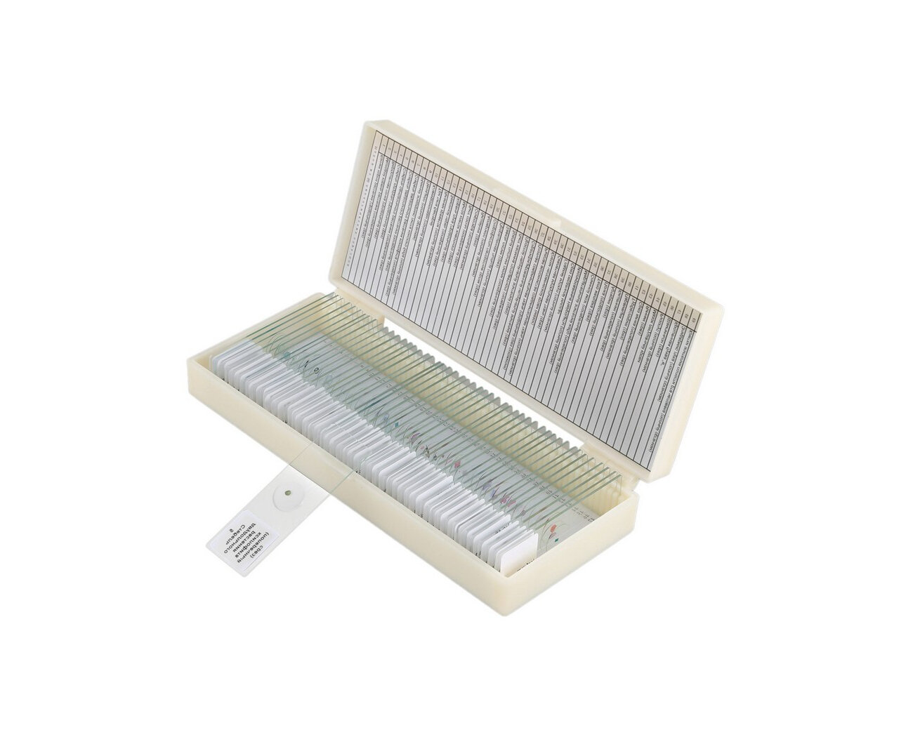 Купить Комплект готовых микропрепаратов 50 штук на русском языке для микроскопа. Стекло. Микропрепарат почка, яичник, лук