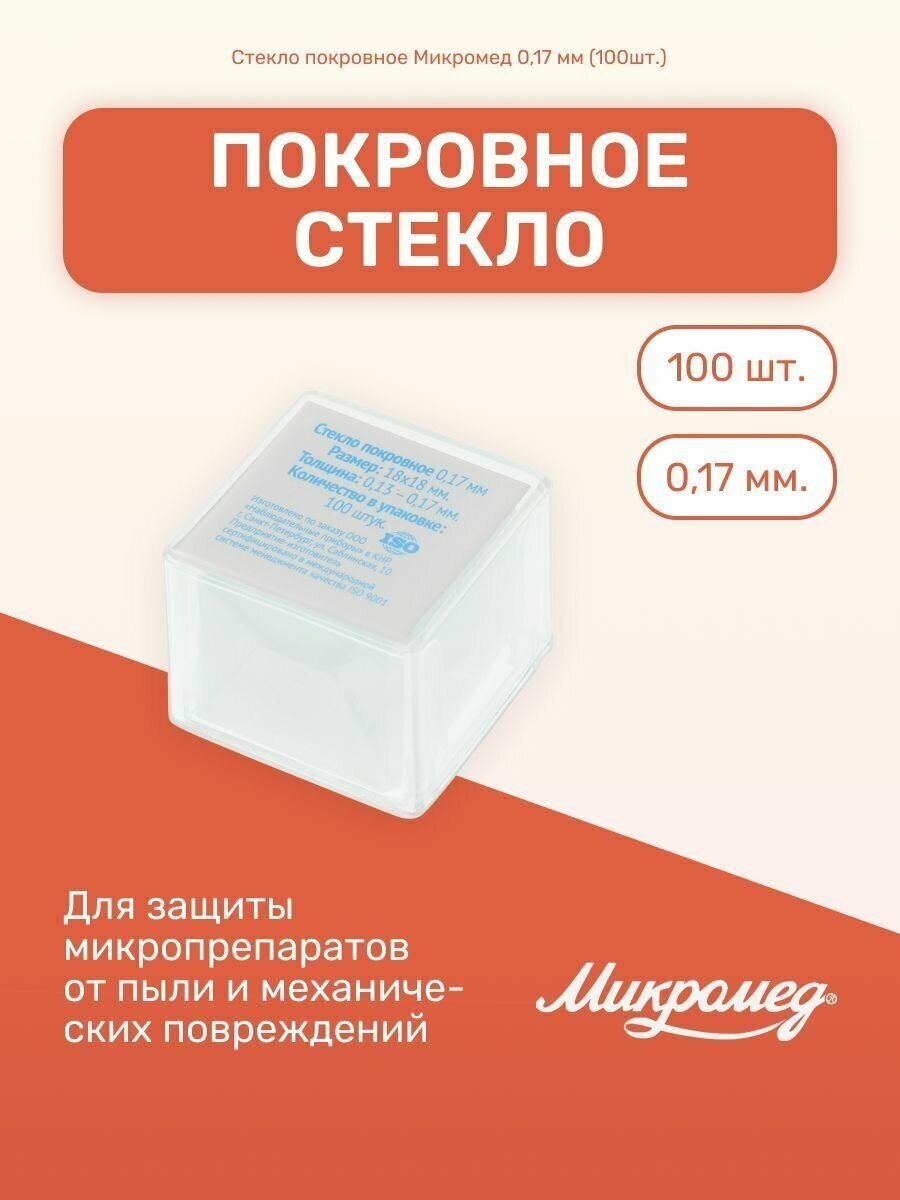 Стекло покровное 0,17 мм набор (100шт.), подходит для Микромед интересное: