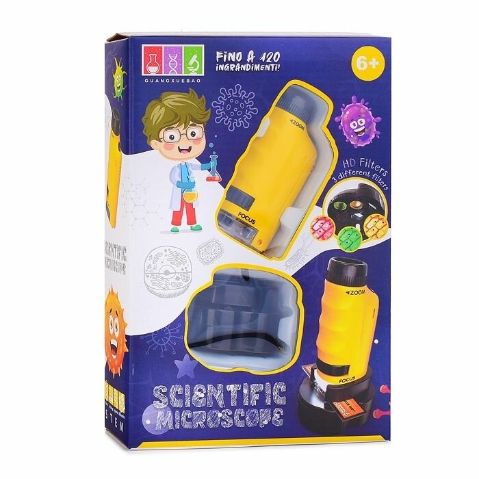 Микроскоп детский Oubaoloon Настраиваемый зум и фокус, три цветных фильтра, в коробке (2120A-1) интересное: