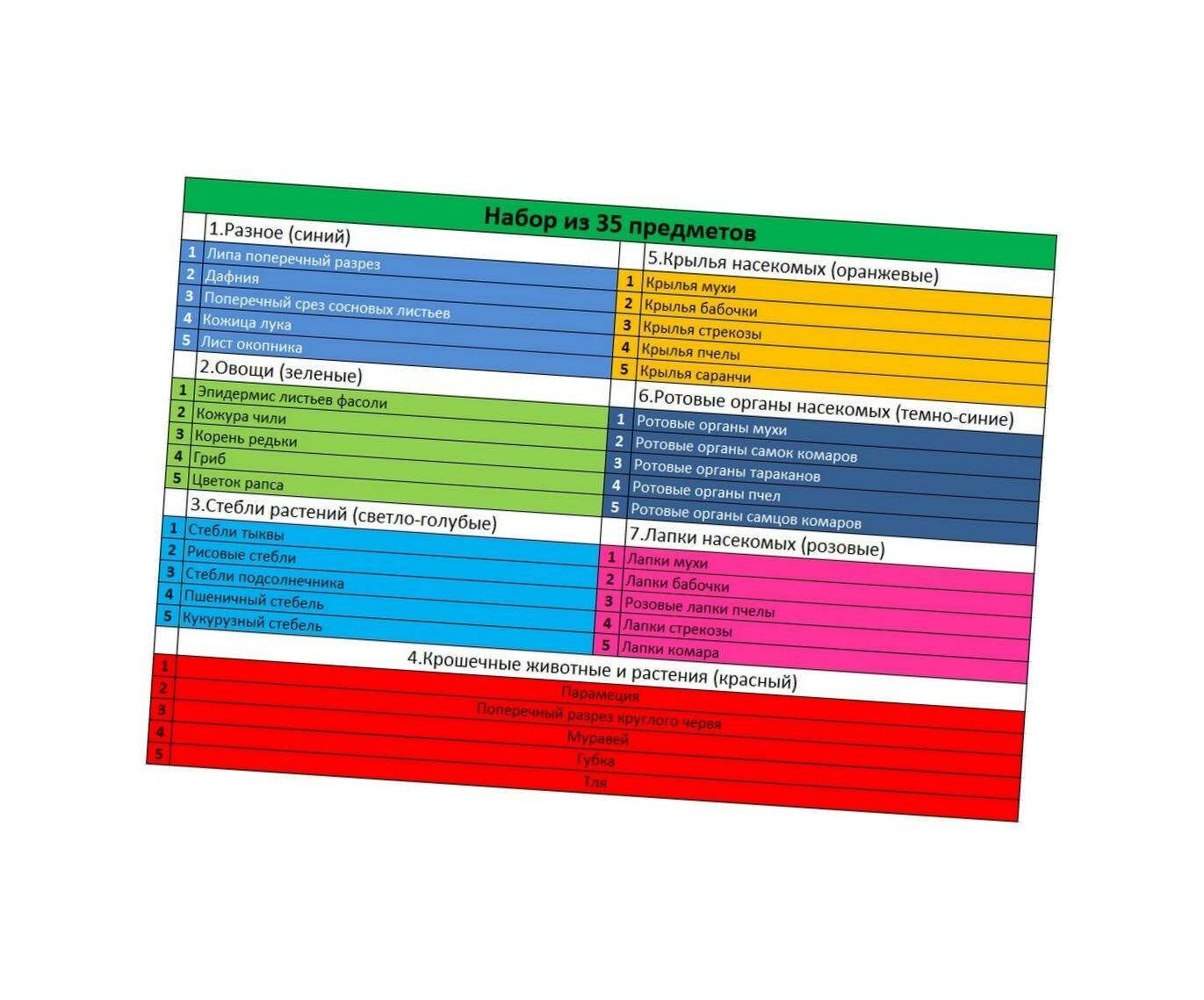 Комплект готовых микропрепаратов для микроскопа 35 шт. На русском языке. Стекло. Микропрепарат липа, гриб, лук и т. д. интересное:
