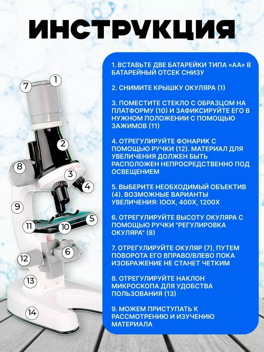 Микроскоп детский для школы со стеклами и пробирками, увеличение в 1200 раз интересное: