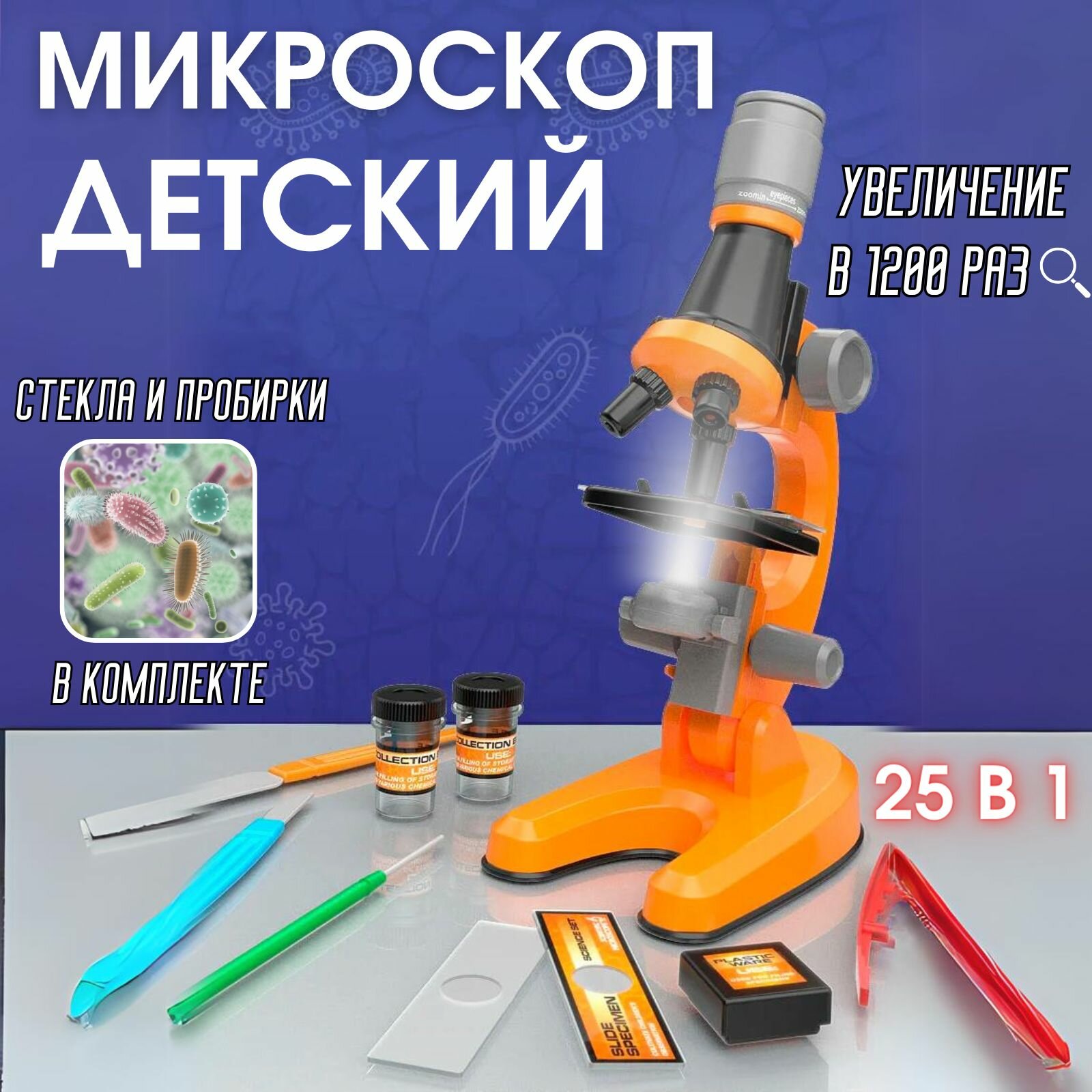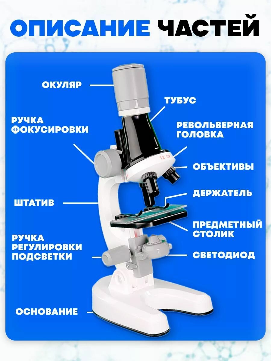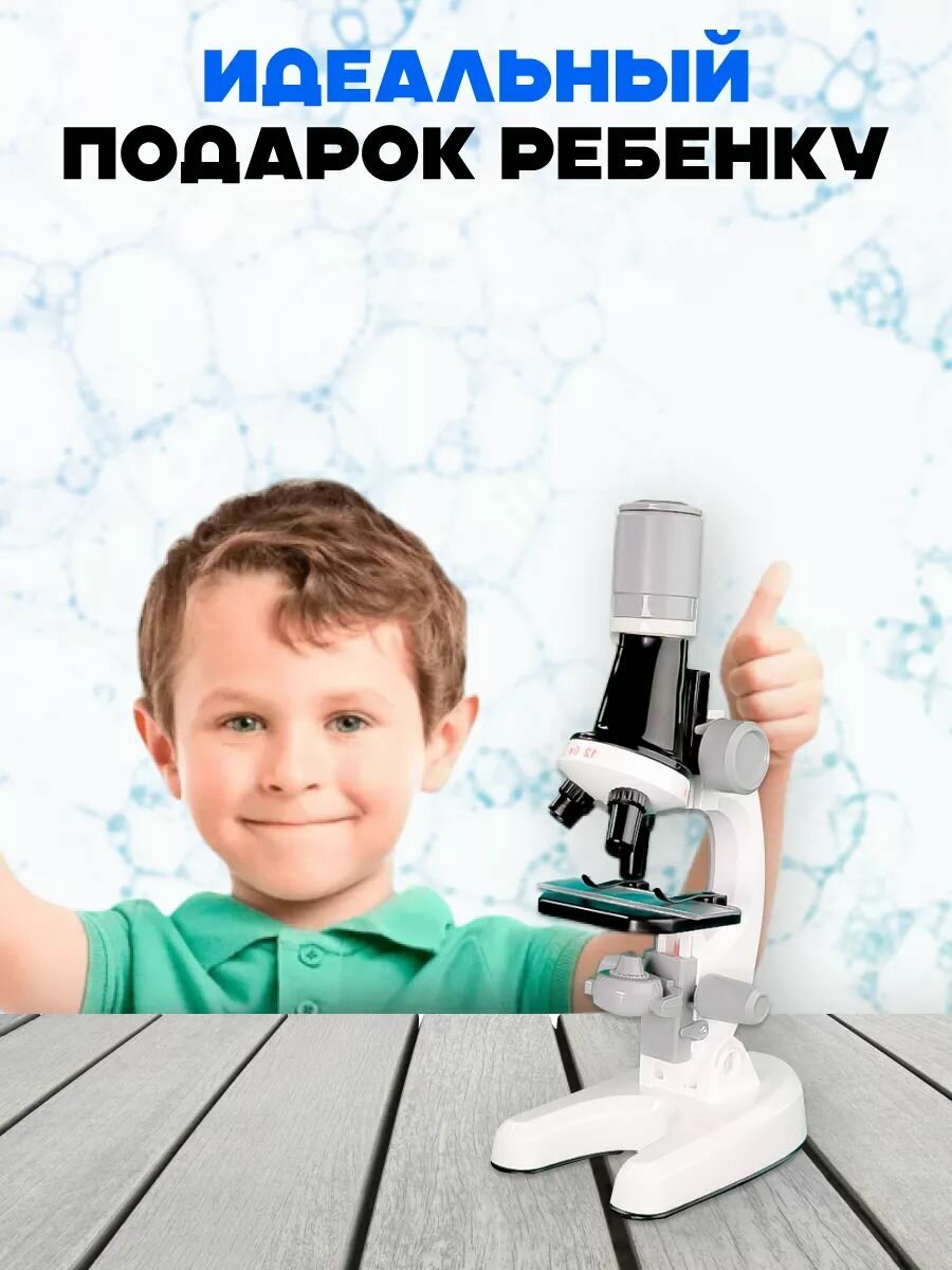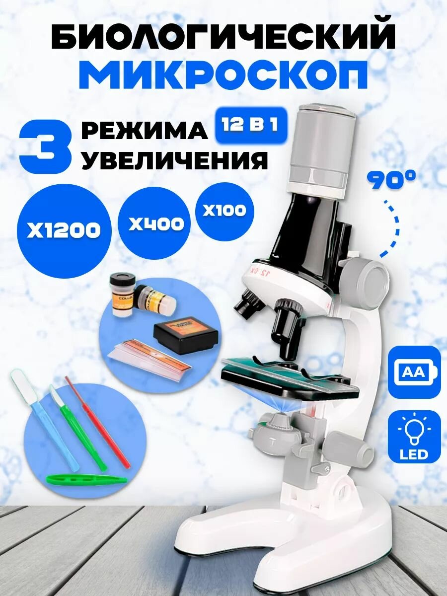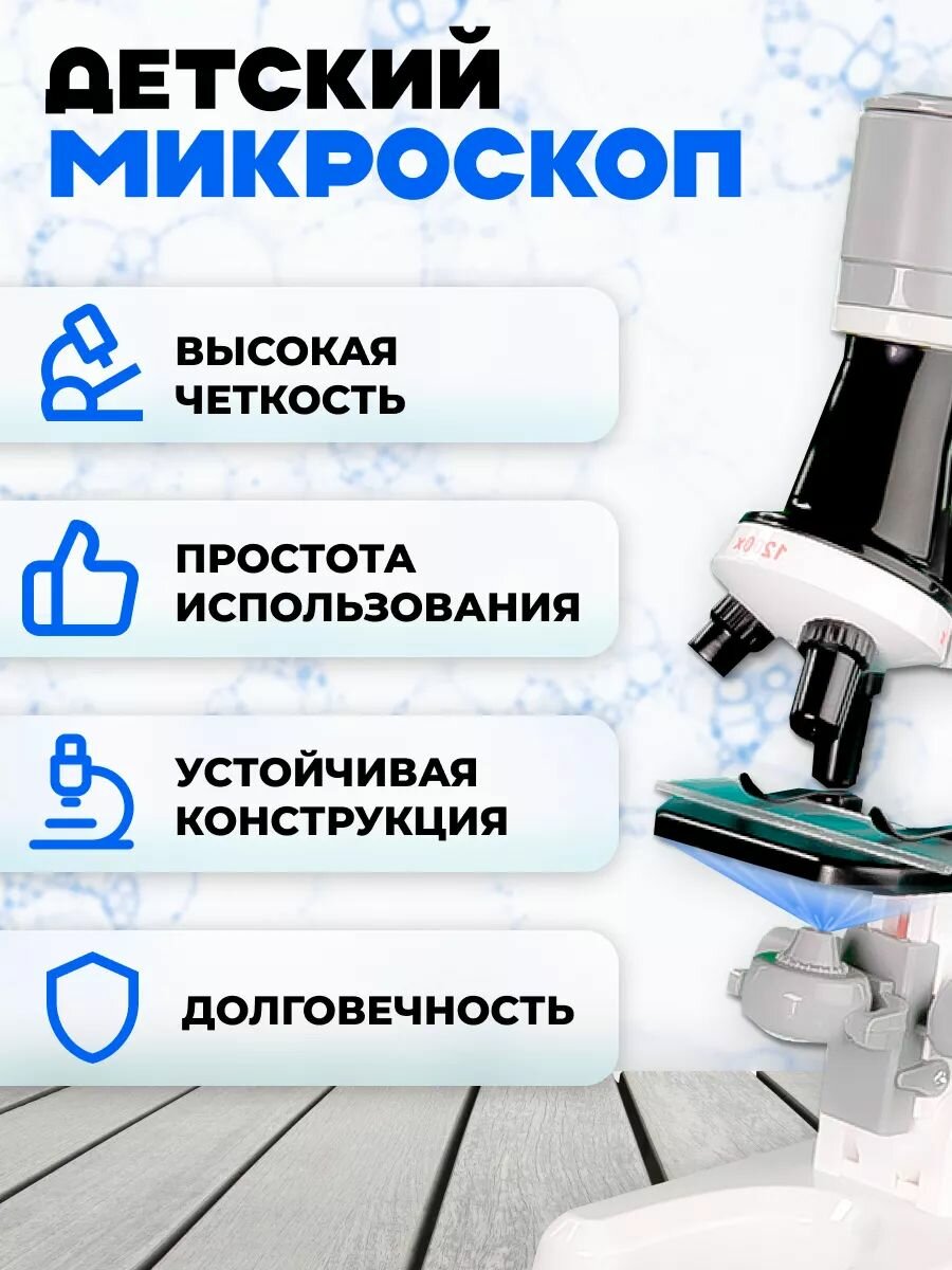 Купить Микроскоп детский для школы со стеклами и пробирками, увеличение в 1200 раз