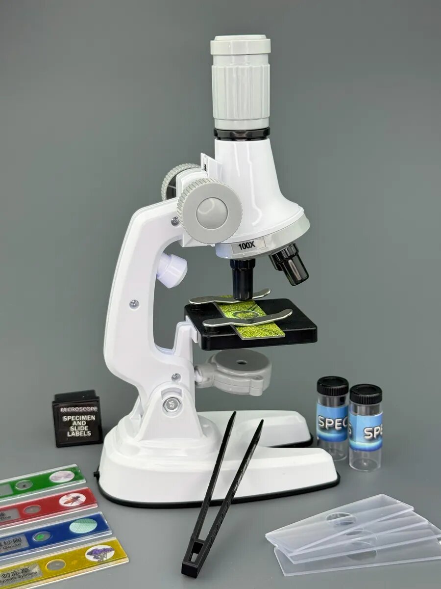 Купить Микроскоп для детей с предметными стеклами и аксессуарами, 4 образца, пинцет
