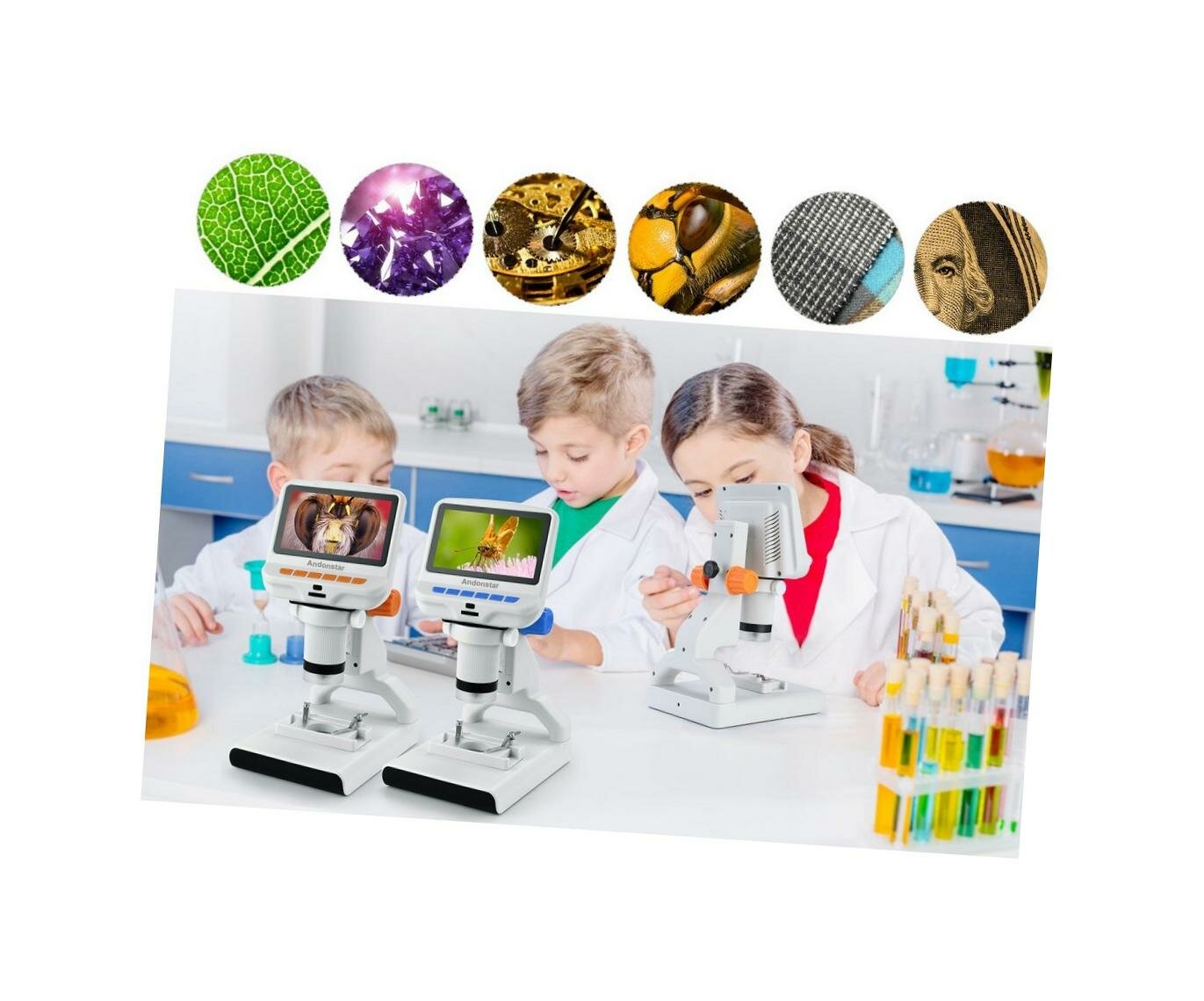 Микроскоп для ребенка МикроМир Мод: A102 (увелич: х1000 - 1920x1080 / 12mp) с монитором и записью на SD микроскоп для детей интересное: