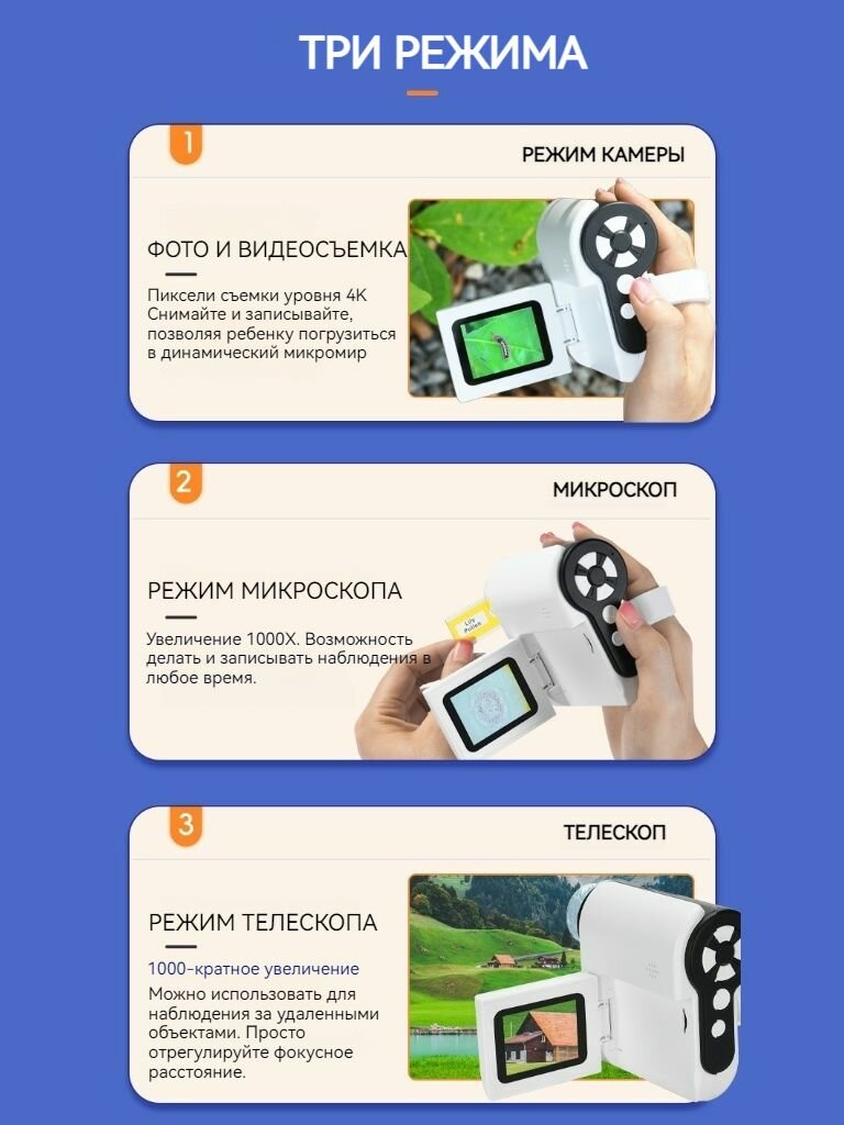 Детский портативный микроскоп, портативный микроскоп,1000-кратное увеличение интересное: