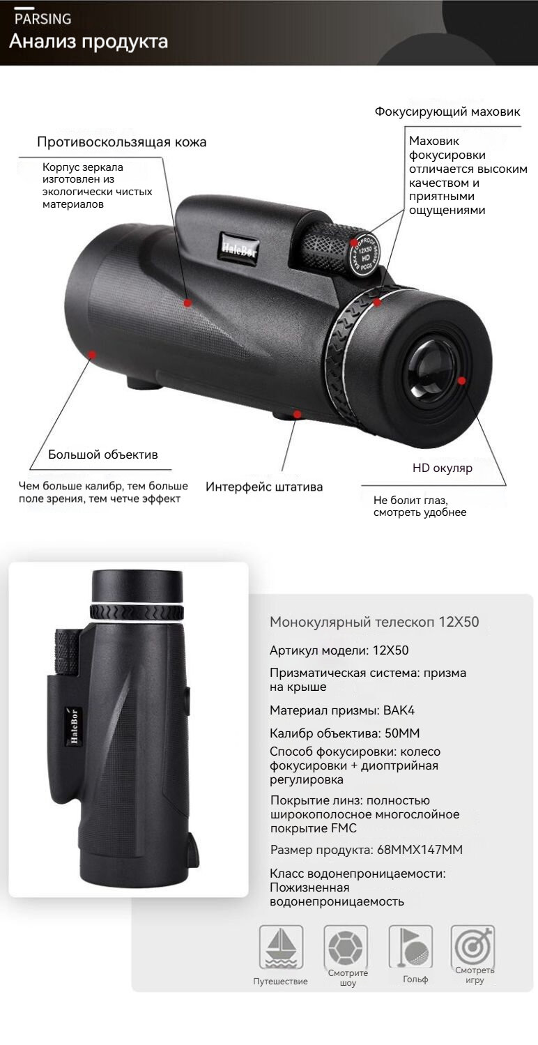 Монокулярный телескоп высокого разрешения, наблюдайте за природой, животными и бытом, снимайте на мобильный телефон интересное: