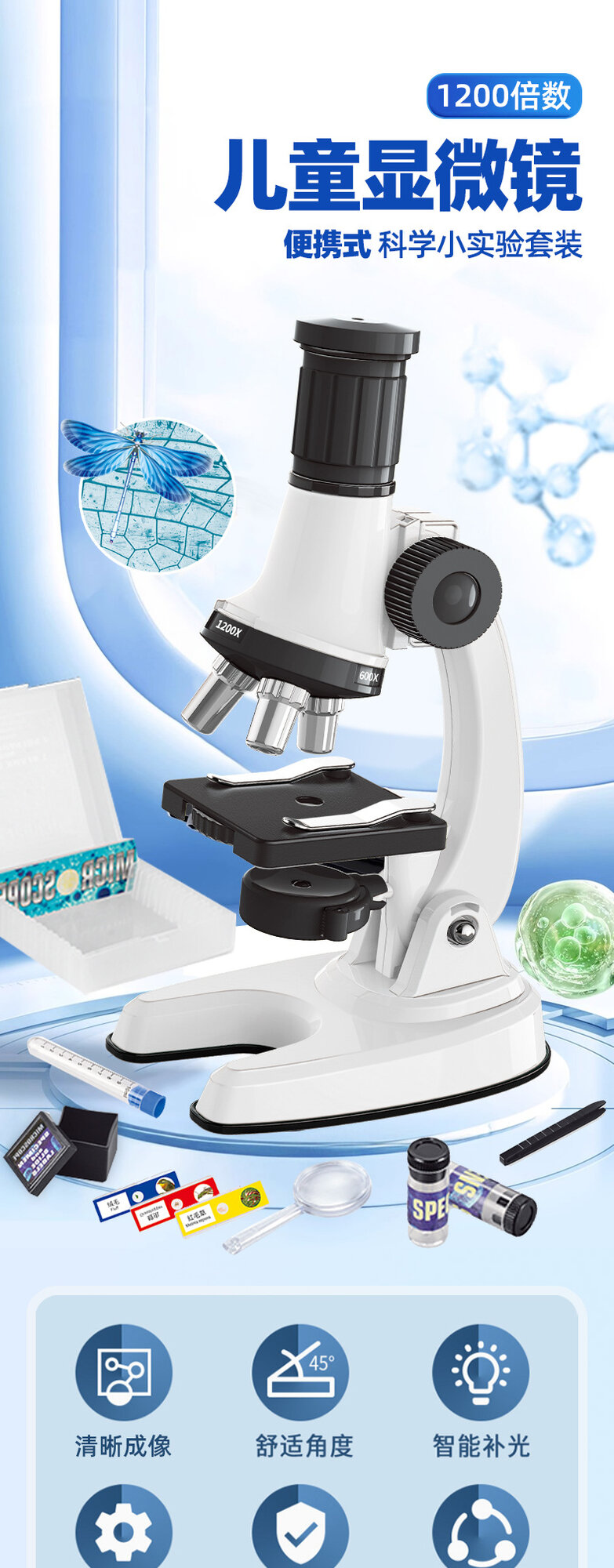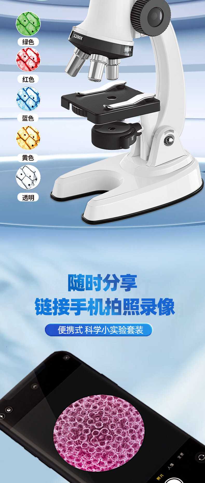 Купить Микроскоп, 1200x, для детей, высокая четкость, для начальной школы