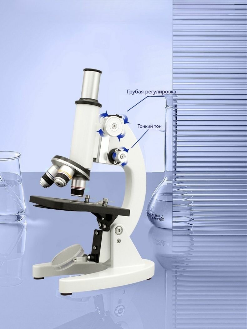 Микроскоп с набором предметных и покровных стекол, держателем объектива интересное: