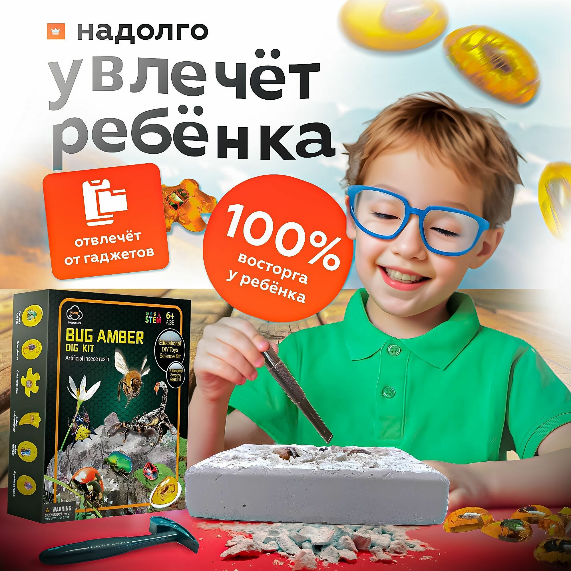 Археологический набор SHARKTOYS "Насекомые в Янтаре", раскопки, опыты и исследования интересное: