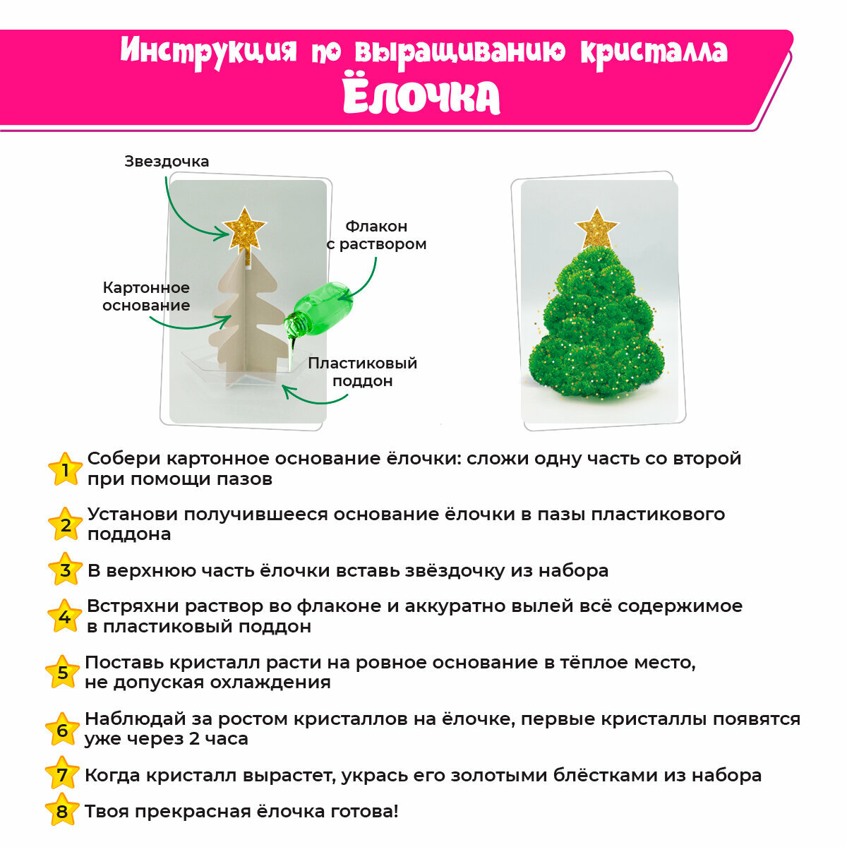 Набор для опытов и экспериментов выращивание кристаллов набор 4 шт "Ёлочка"