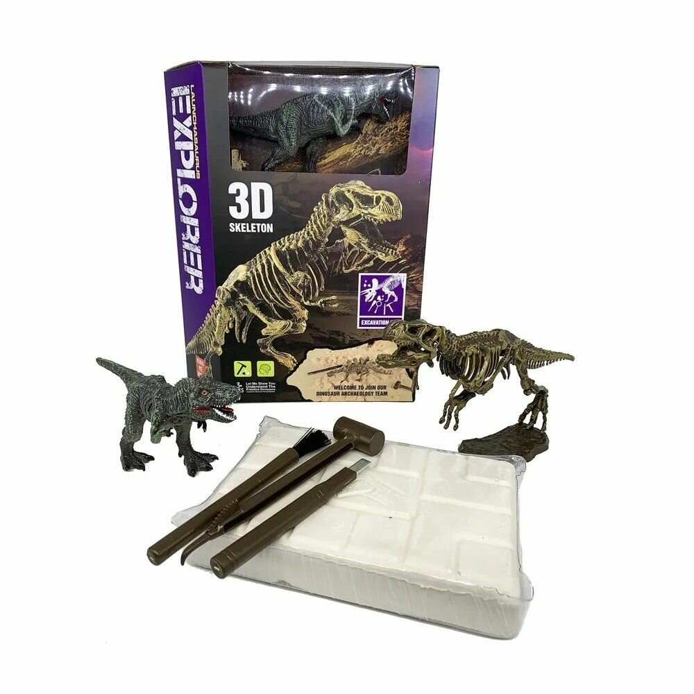 Набор археологические раскопки Динозавра для детей с игрушкой фигуркой Тираннозавр, гипсовая основа 11.5 х 17 см, инструменты для раскопок интересное: